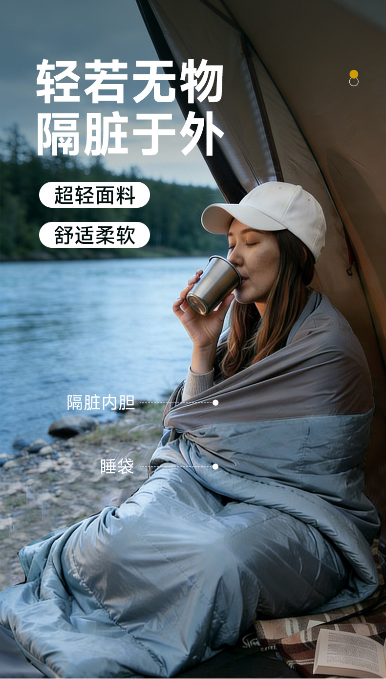 야외 경량 나일론 캠핑 침낭 여행 호텔 휴대용 얇은 초경량 내부 라이너