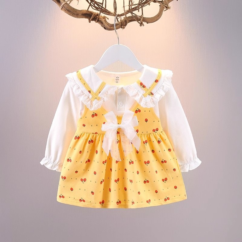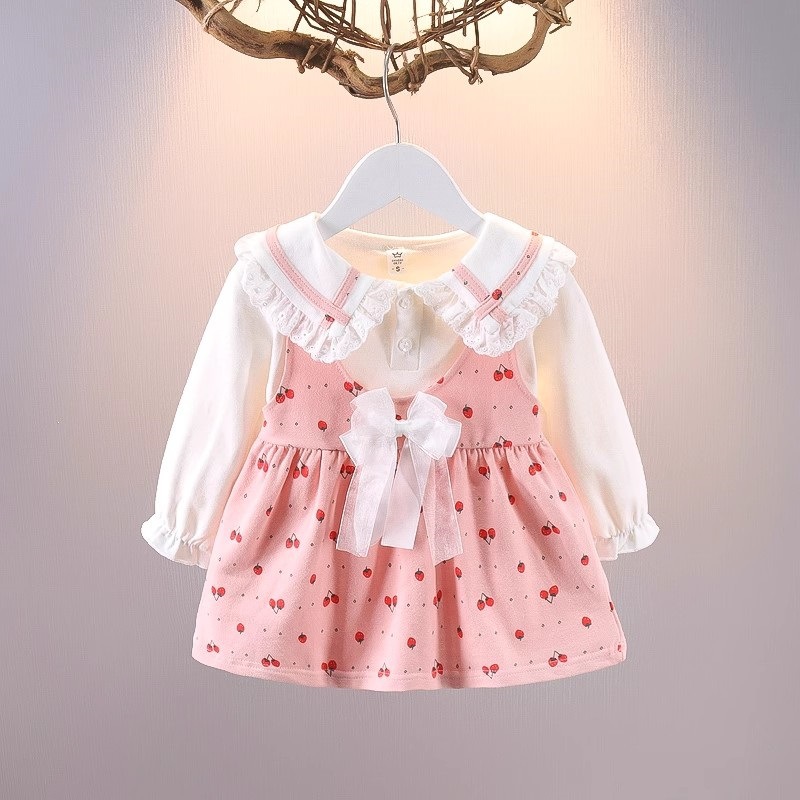 0-3세 여아 꽃무늬 원피스 세트, 세련된 공주풍 유아 봄 가을 의류, 2025년 신상 여아 아기 원피스스토어 가기