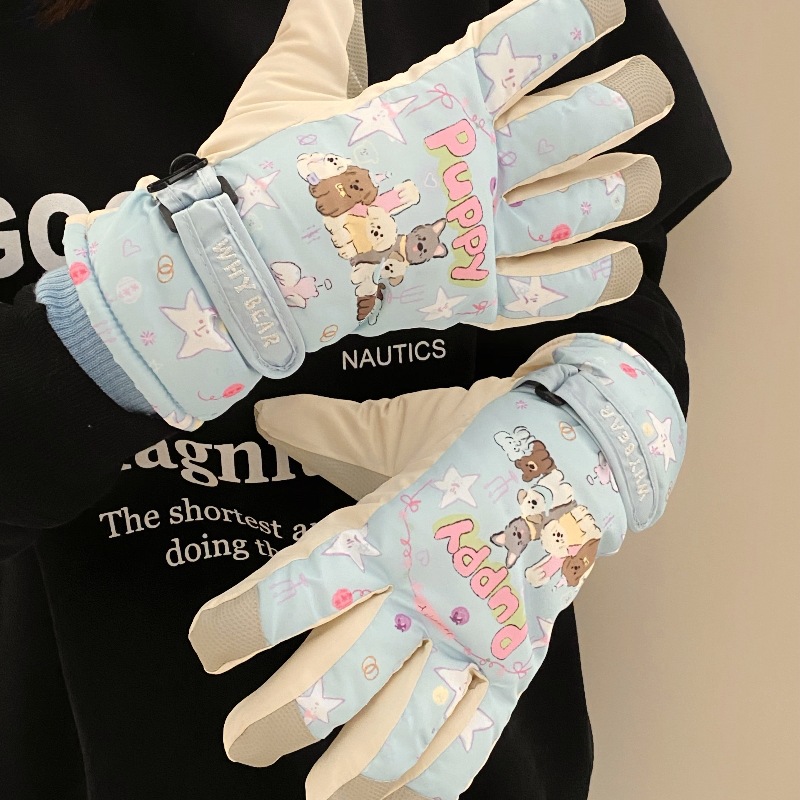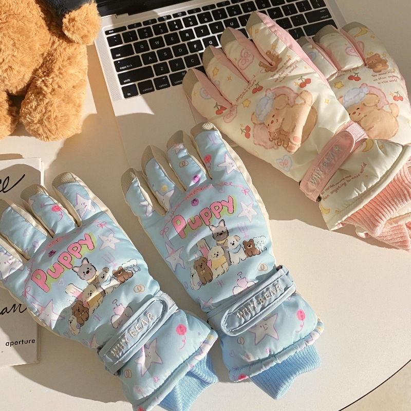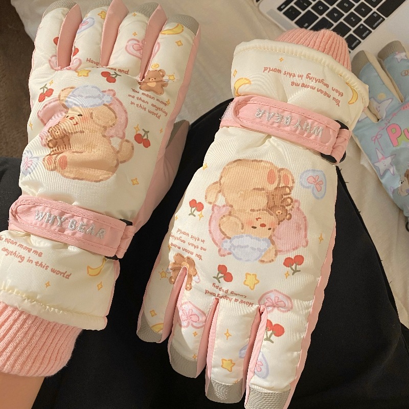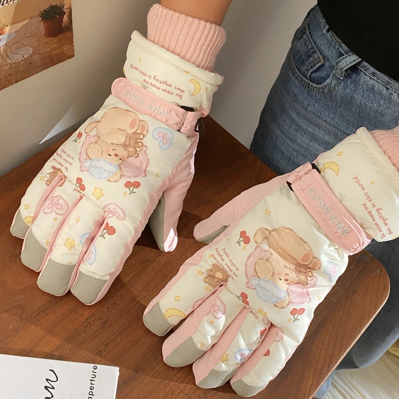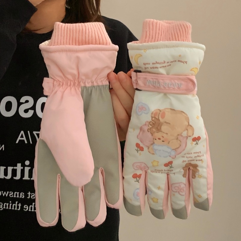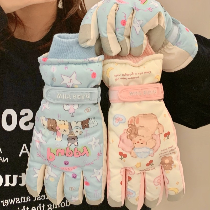 만화 곰 스키 장갑 겨울 용품 야외 장갑 방풍 방지 다섯 손가락 장갑 따뜻한 승마 학생