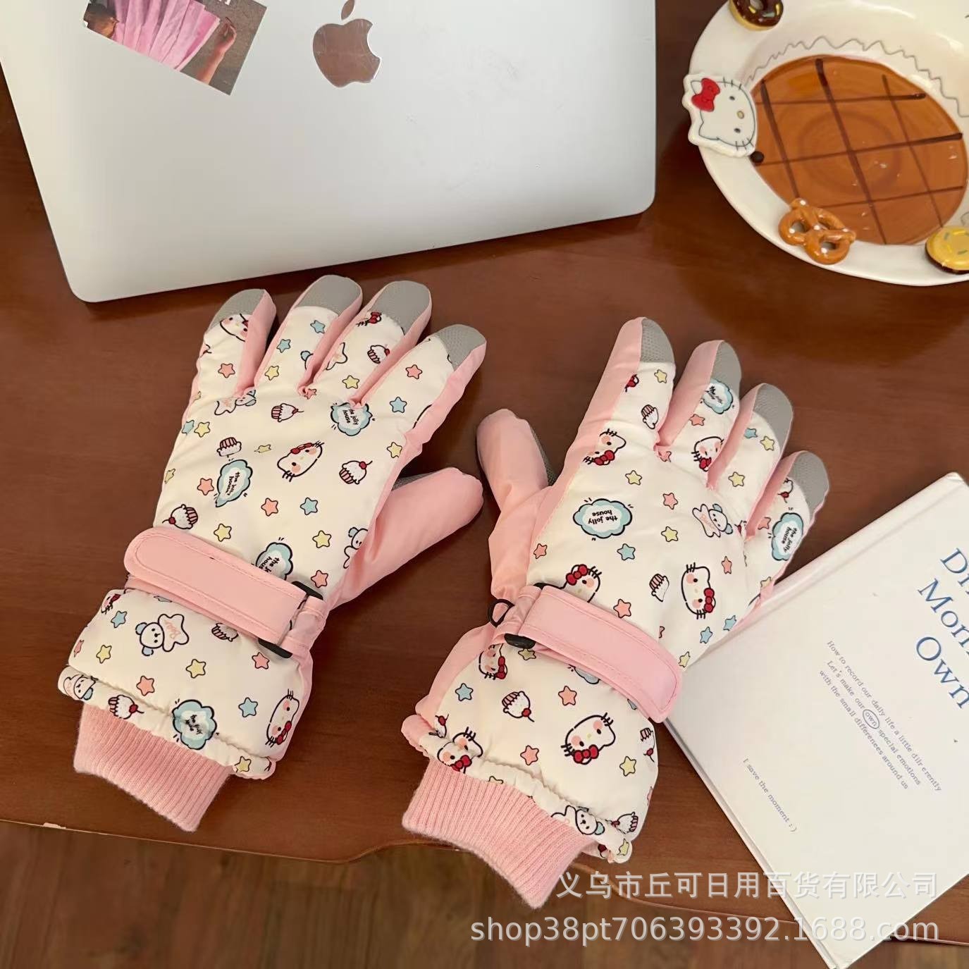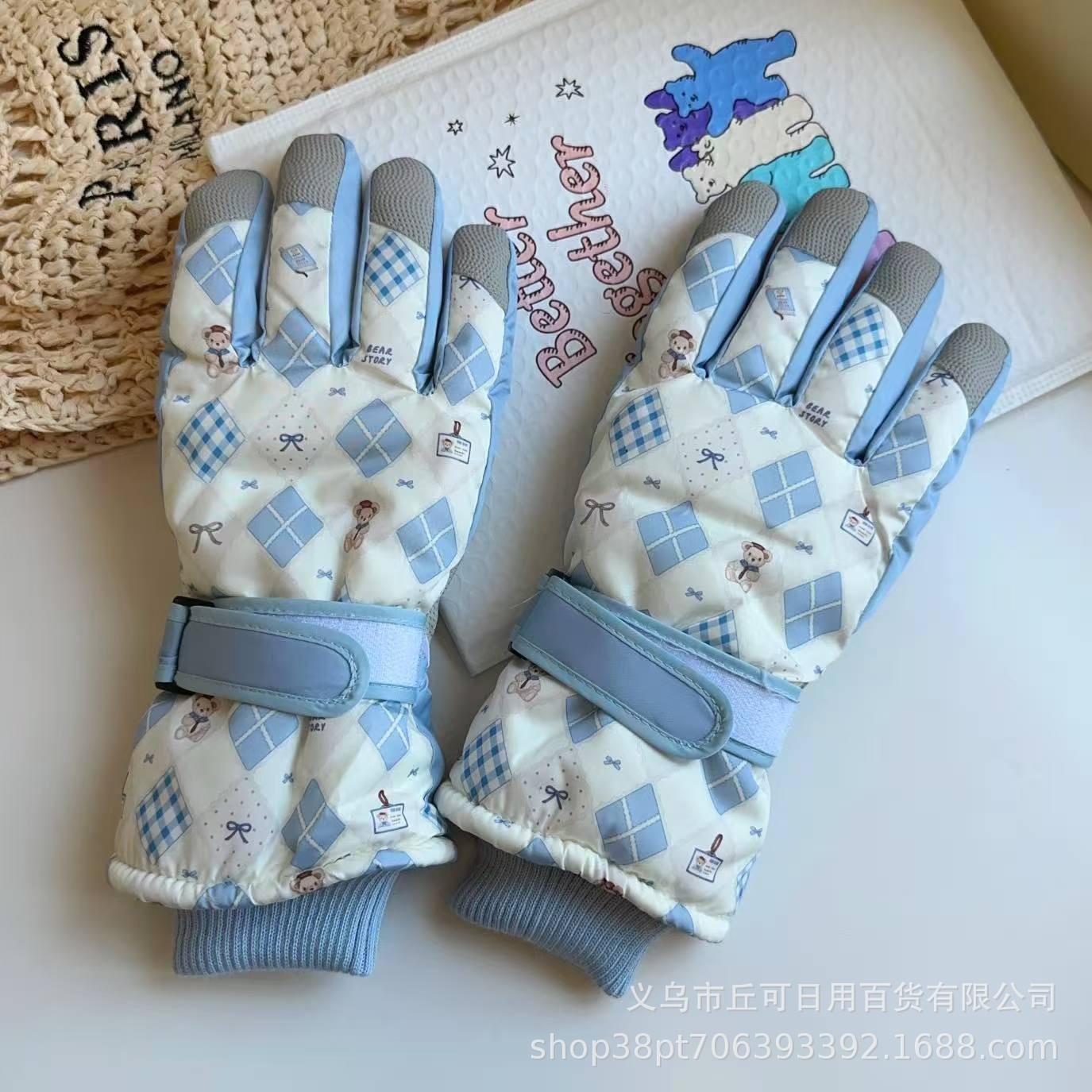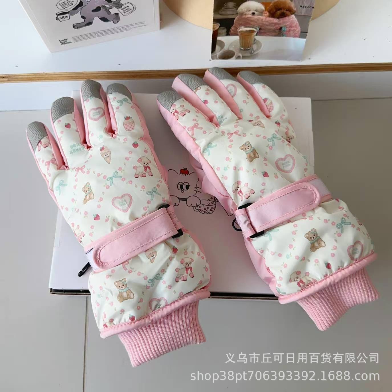 만화 곰 스키 장갑 겨울 용품 야외 장갑 방풍 방지 다섯 손가락 장갑 따뜻한 승마 학생