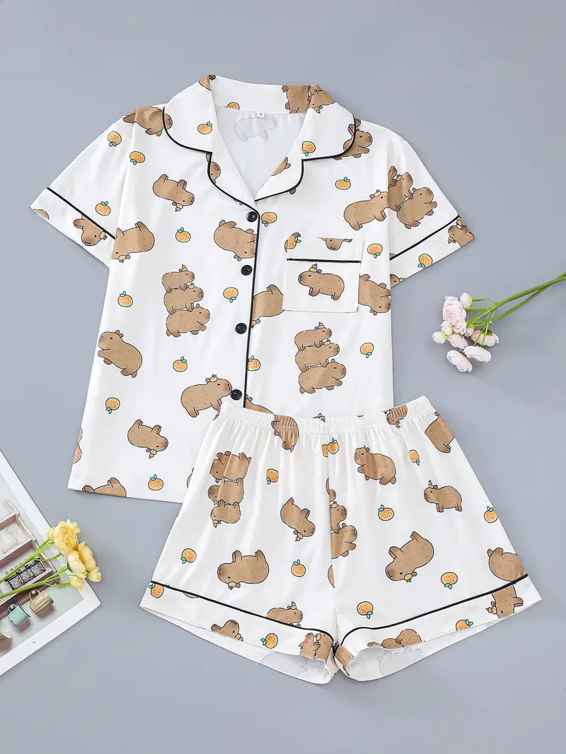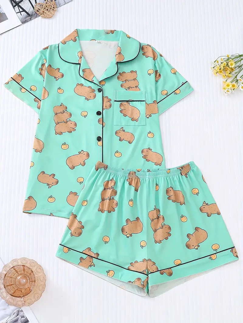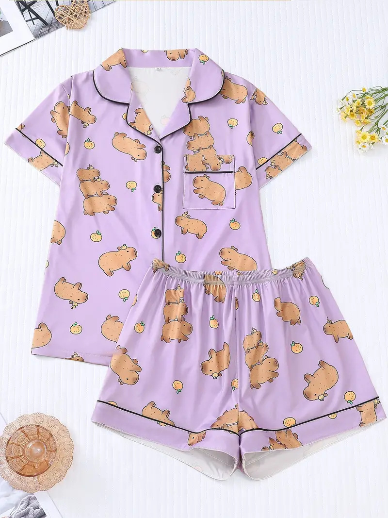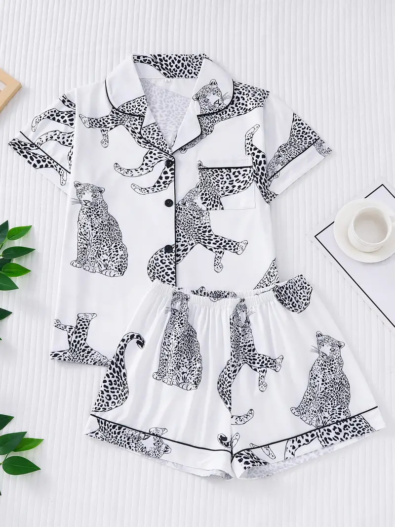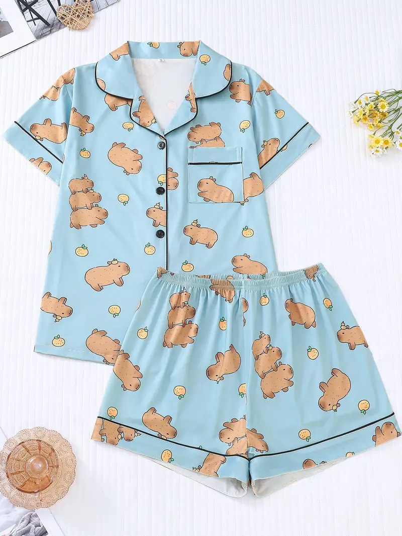 새로운 아마존 독립 사이트에서 인기 있는 3D 여성 반팔 잠옷 세트, 가장자리 처리 및 POD 맞춤 제작 포함스토어 가기