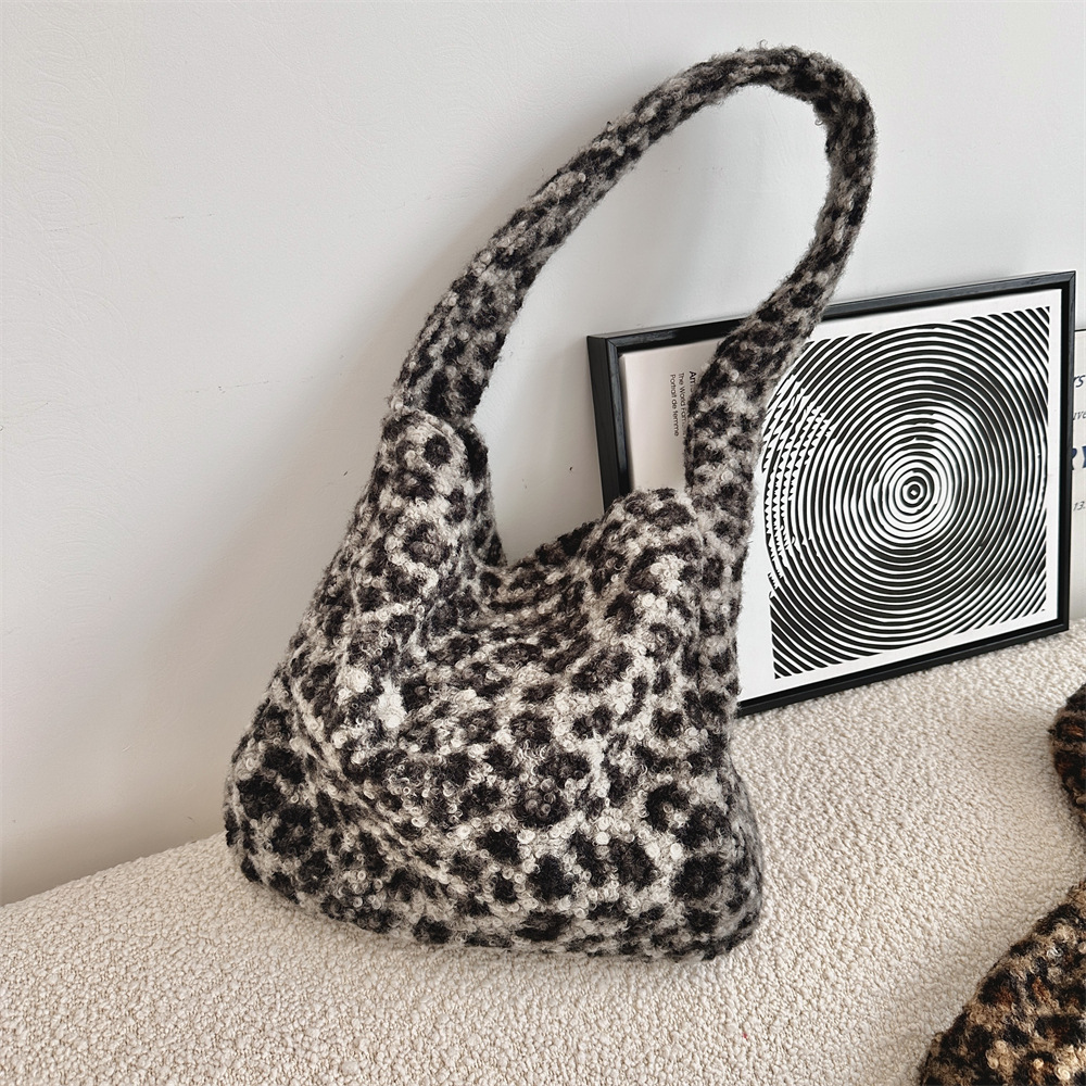 49291 가을과 겨울 새로운 한국 패션 모조 양고기 봉제 대용량 숄더백 표범 가방스토어 가기