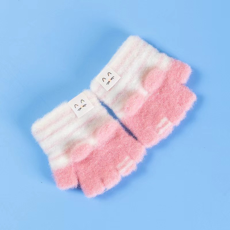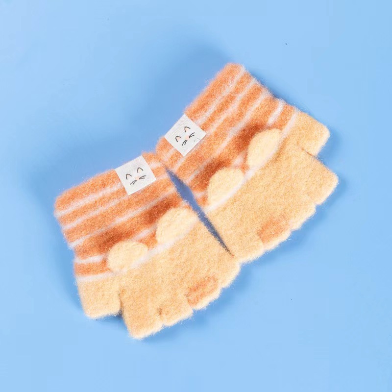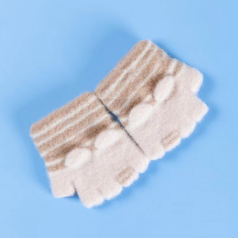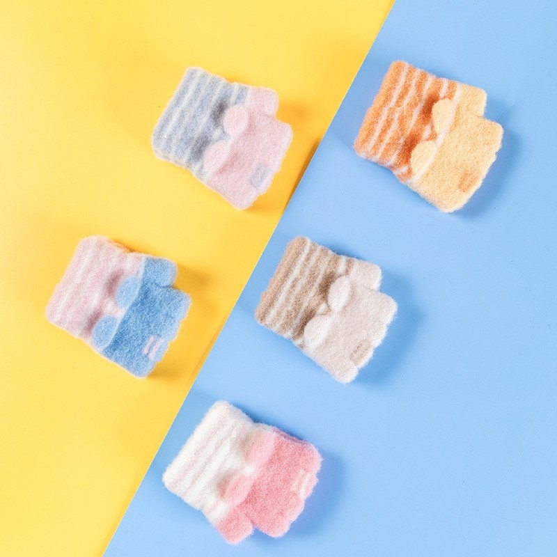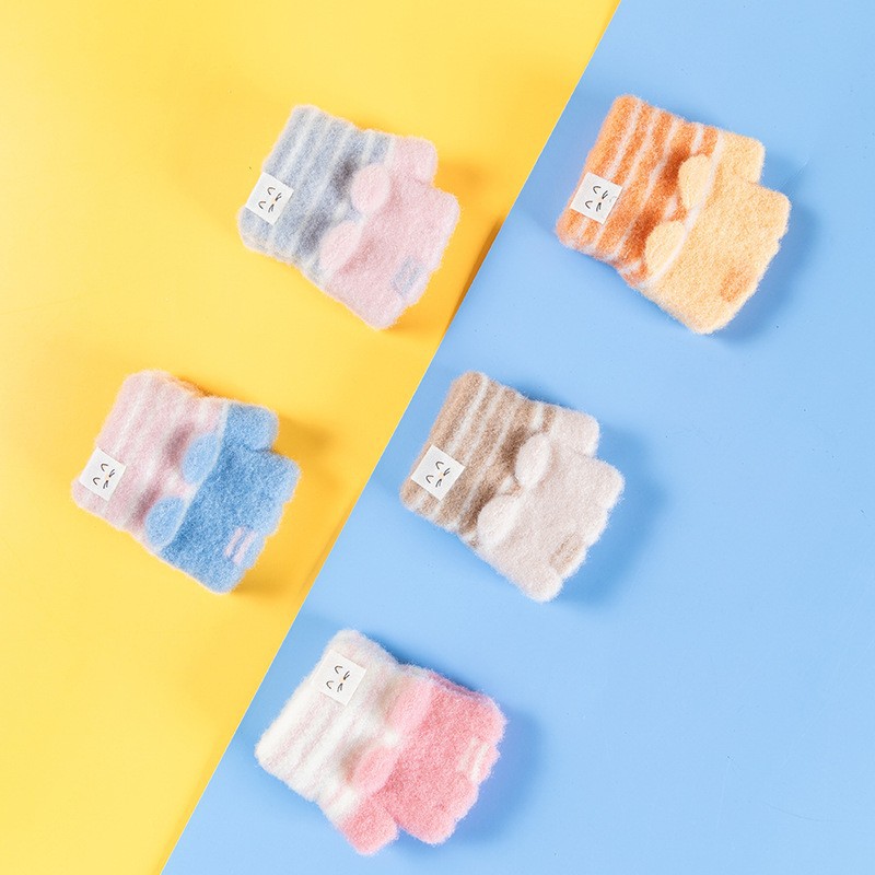 설화수 아기 장갑 따뜻한 니트 줄무늬 겨울 유아용 귀여운 만화 아기 반장갑스토어 가기