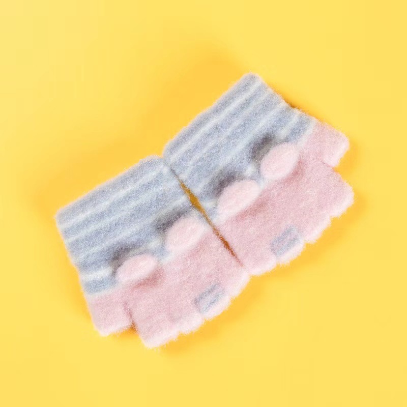 설화수 아기 장갑 따뜻한 니트 줄무늬 겨울 유아용 귀여운 만화 아기 반장갑