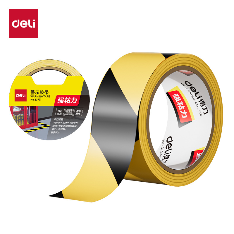 델리 33771 노란색과 검정색 PVC 경고 테이프 지브라 라인 경고 랜드마크 스티커 지상 표시 위치 지정 구역 경고