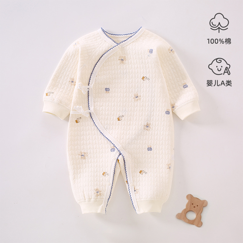 신생아 옷 가을과 겨울 유형 순수한 면 따뜻한 나비 옷 아기 잠옷 클립 면 등반 옷 하 옷 공기 면