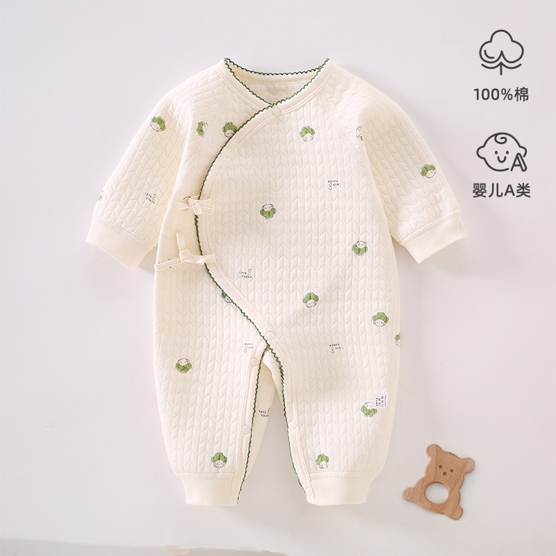 신생아 옷 가을과 겨울 유형 순수한 면 따뜻한 나비 옷 아기 잠옷 클립 면 등반 옷 하 옷 공기 면스토어 가기