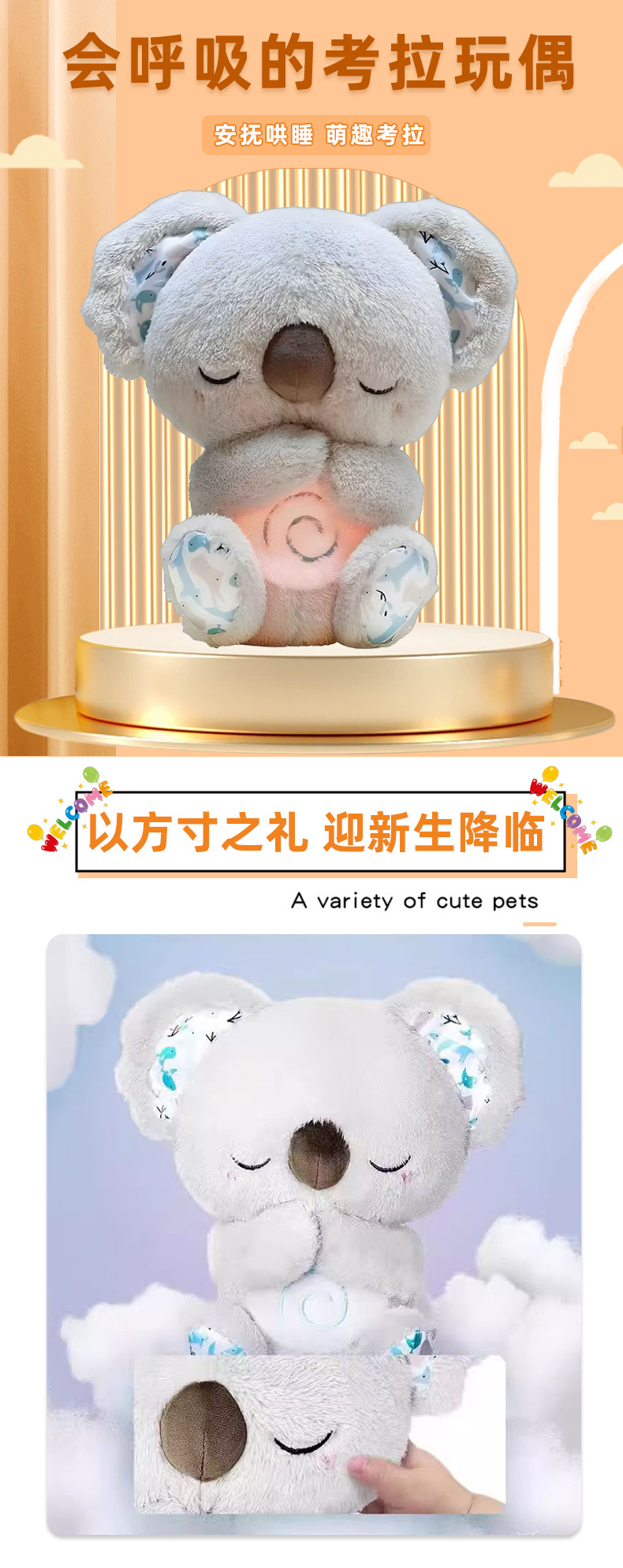 숨쉬는 코알라 진정 수달 아기 인형 소리와 가벼운 인형 유물 조기 교육은 아기 음악 어린이 장난감과 함께스토어 가기
