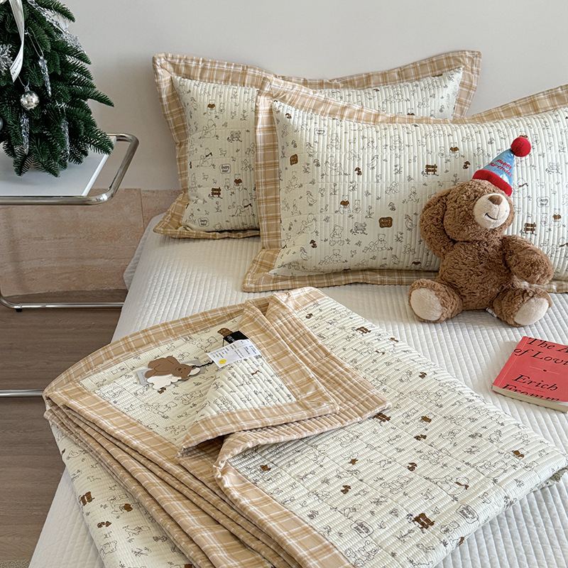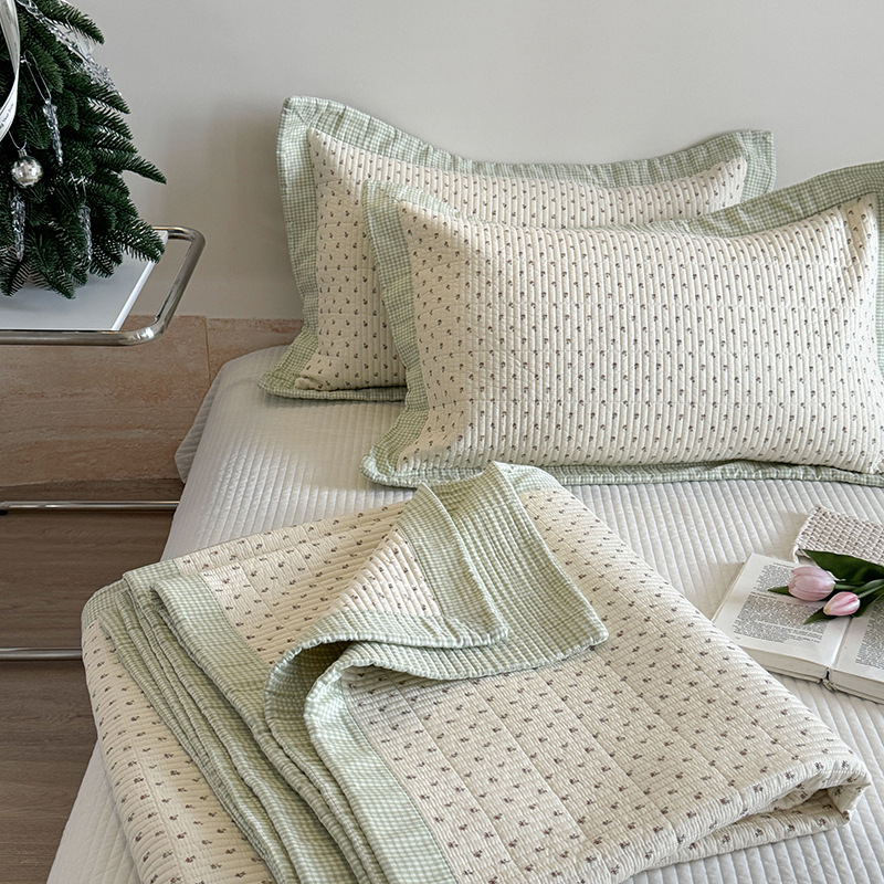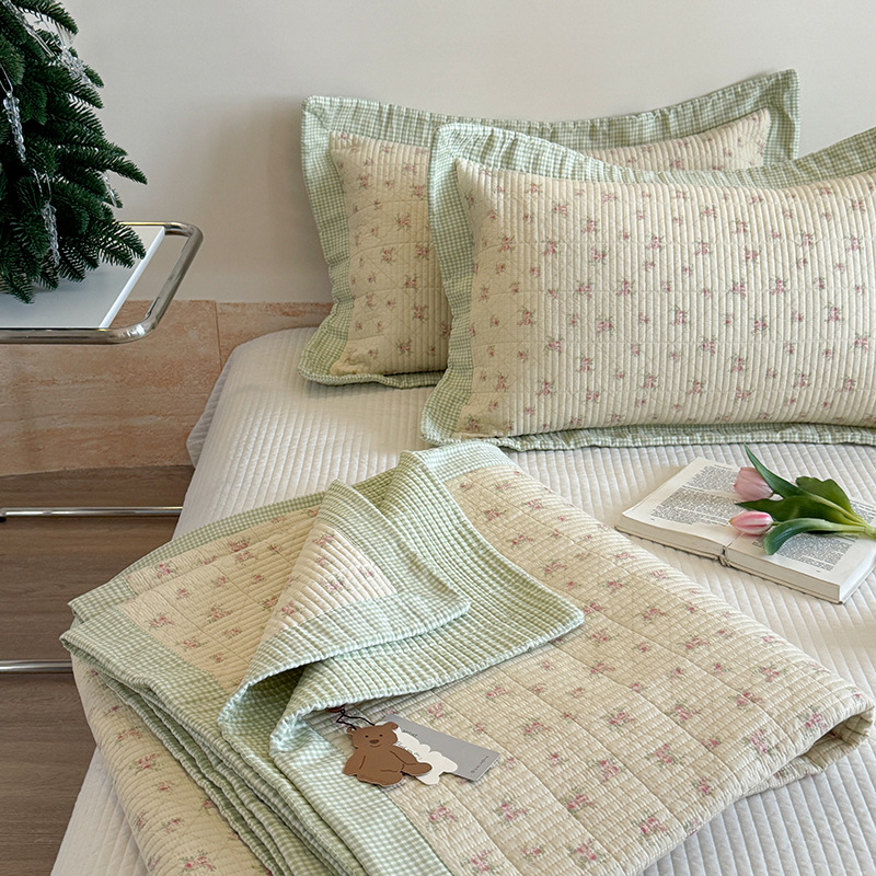 새로운 면 격자 무늬 명암 핸드 백 사이드 베드 커버 3 조각 양면 한국어 퀼트 두꺼운 침대 시트스토어 가기