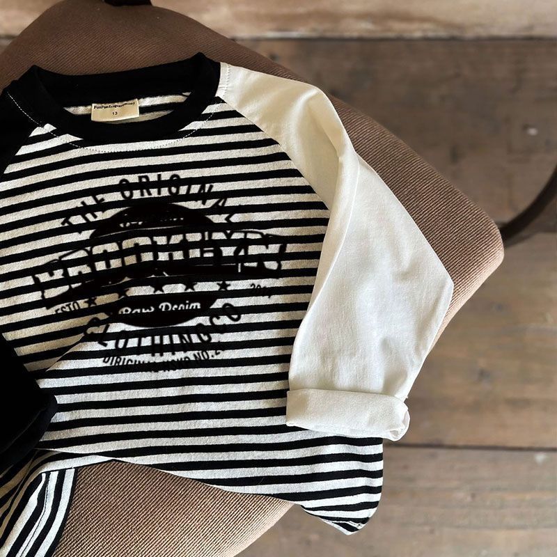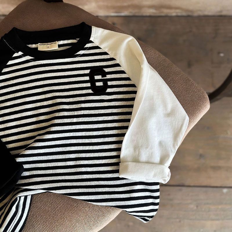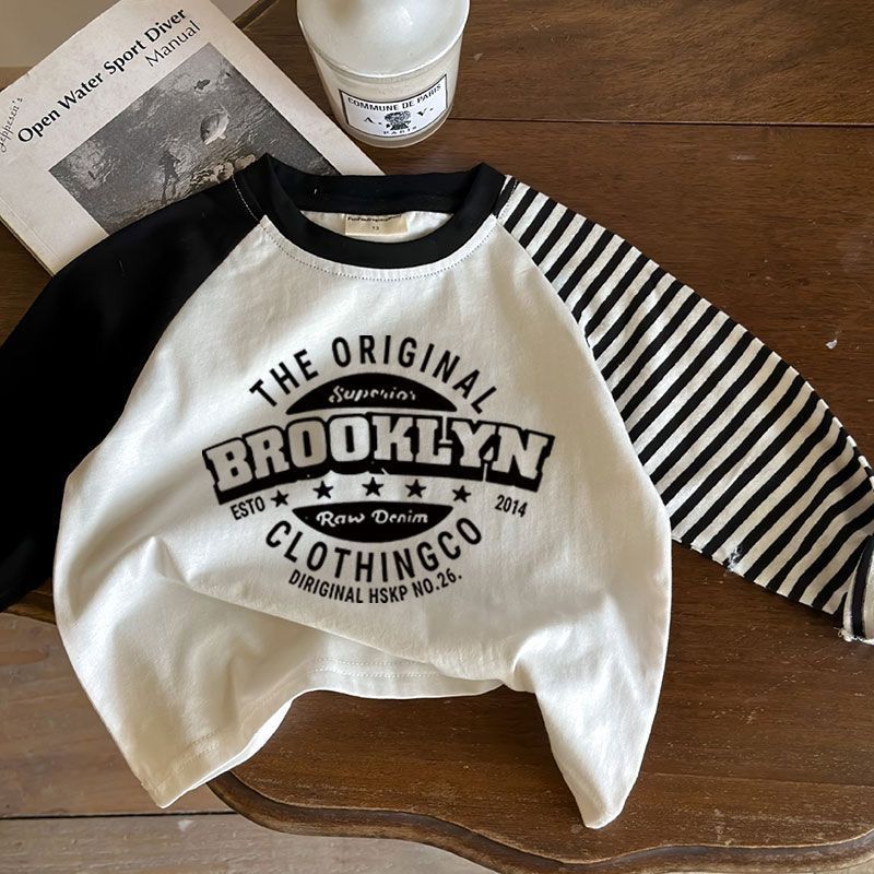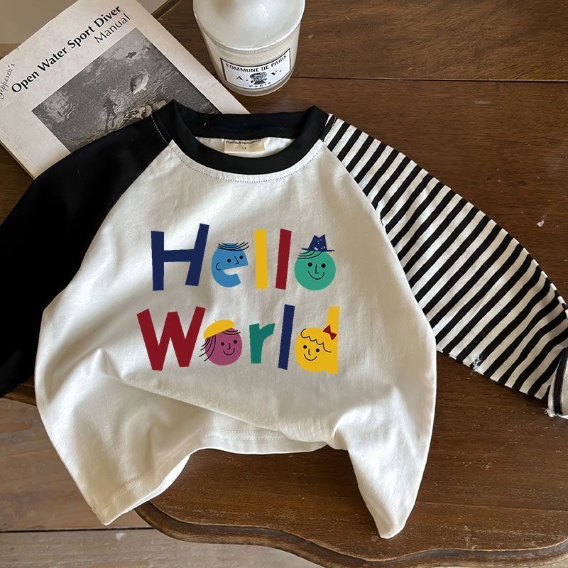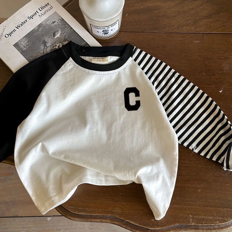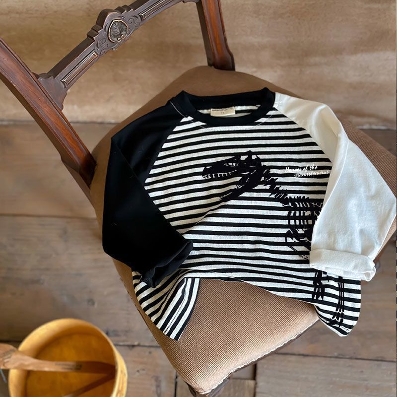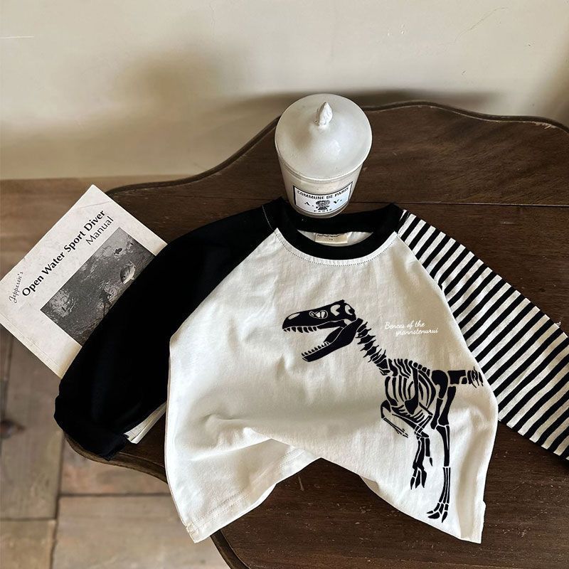 아동용 긴팔 티셔츠 2025 가을 신상 남녀 공용 한국 스타일 공룡 만화 배색 래글런 슬리브 기본 티셔츠 라운드넥 티스토어 가기