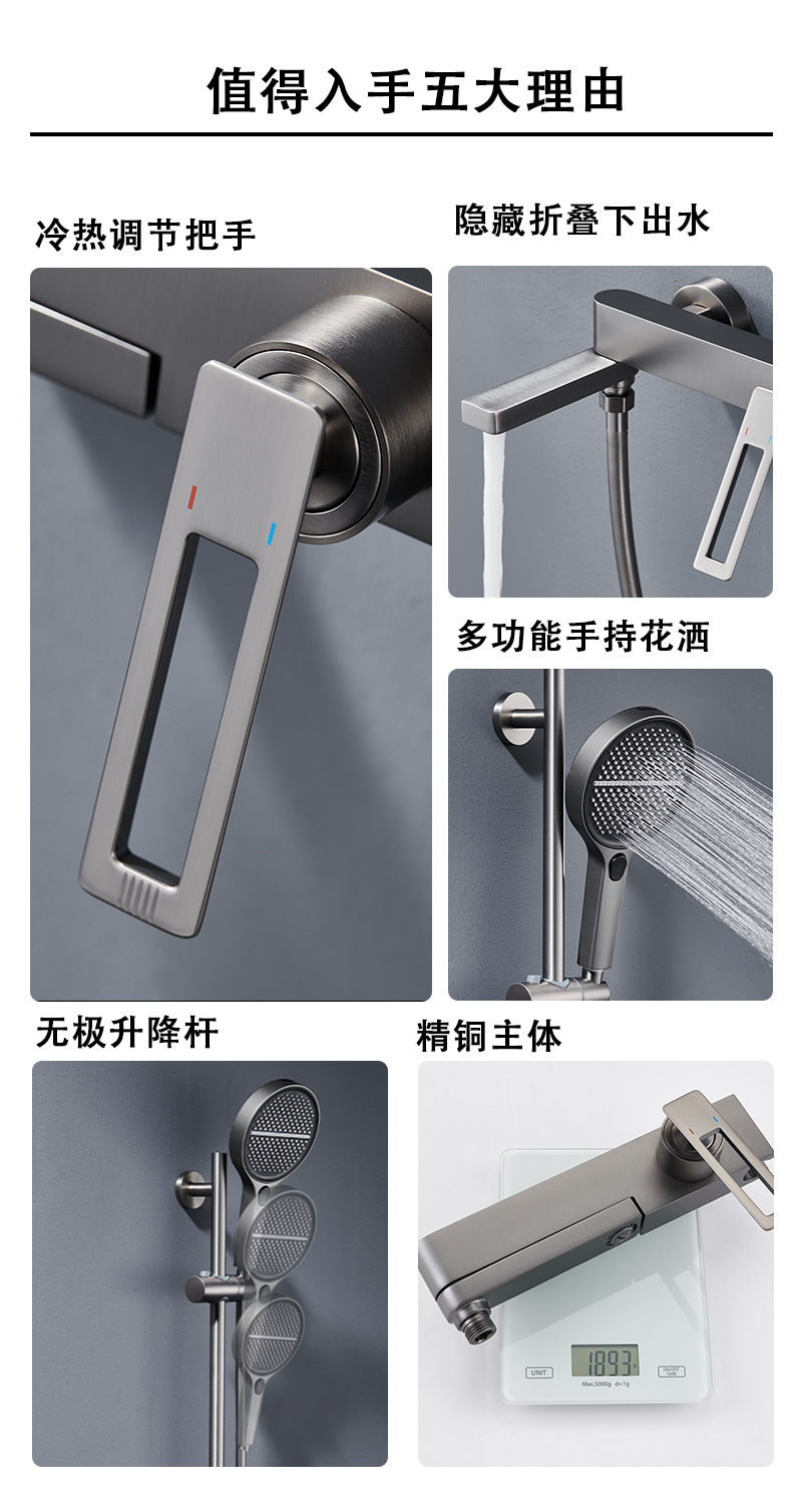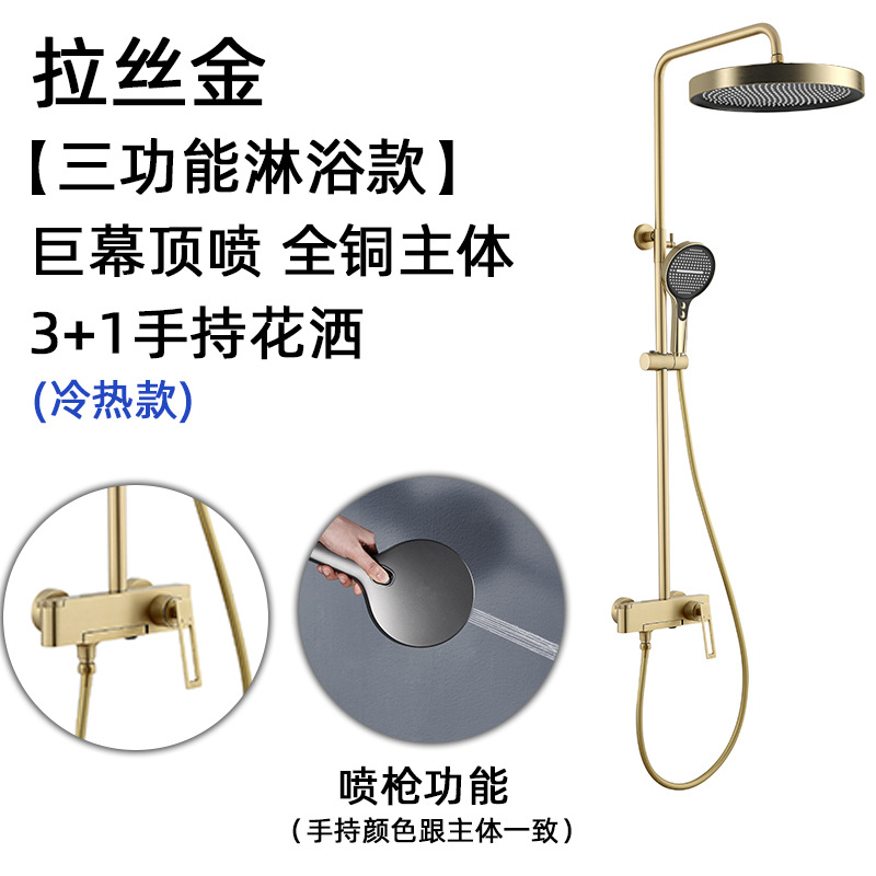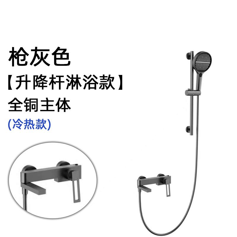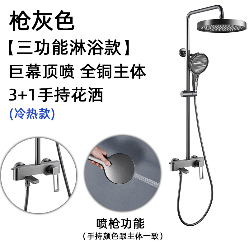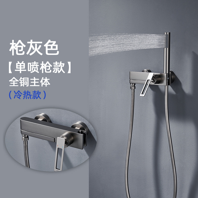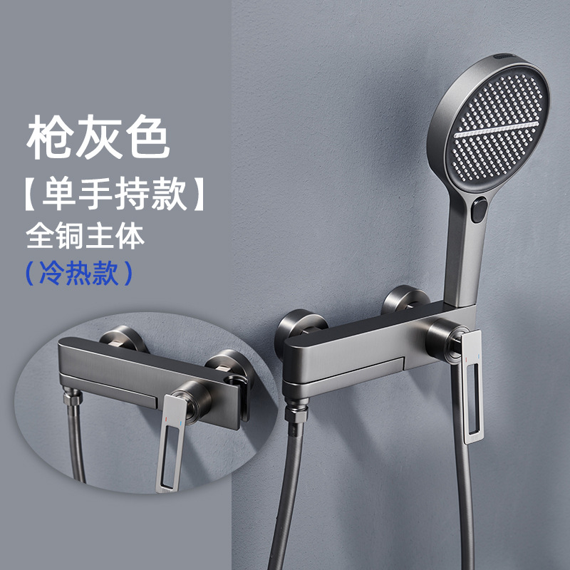 리프팅로드가있는 모든 구리 고온 및 냉간 혼합 밸브 수도꼭지를 세트 비 탑 스프레이 분할 간단한 총 회색 욕조 샤워