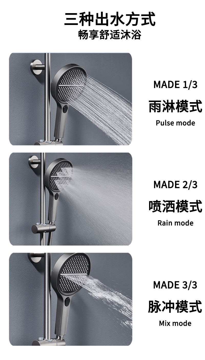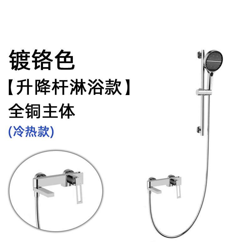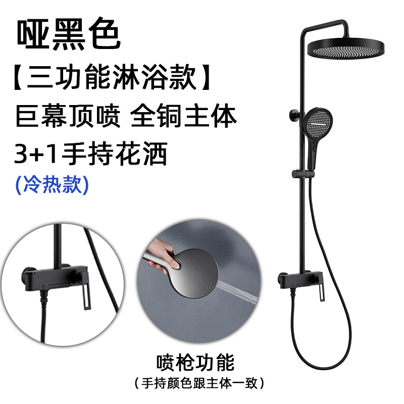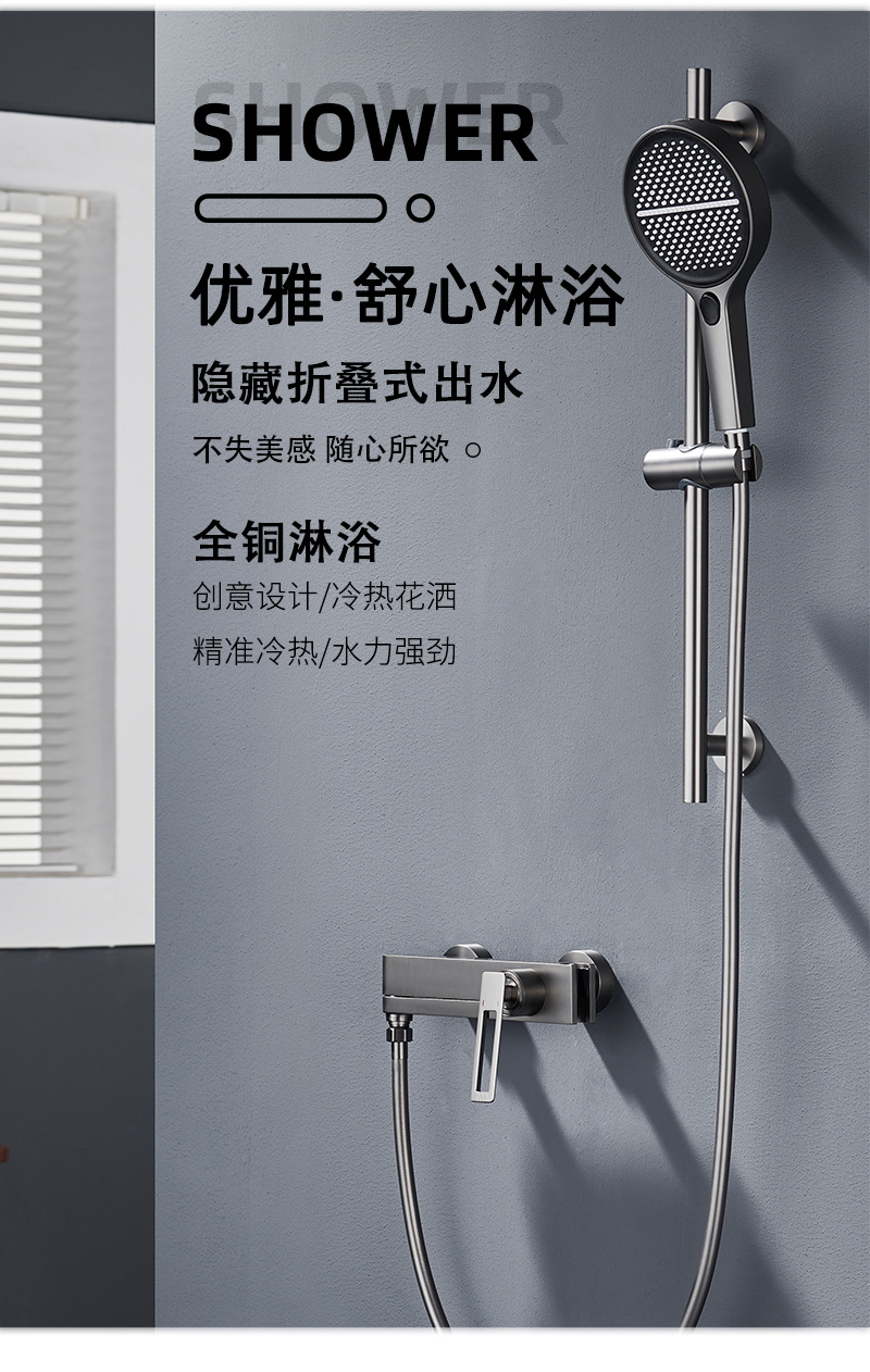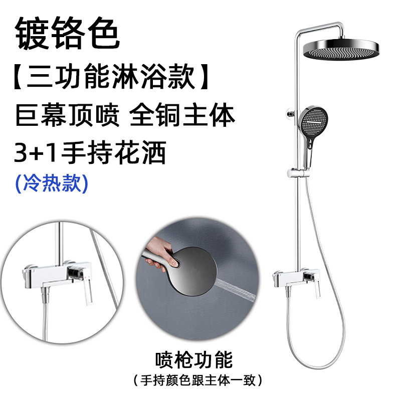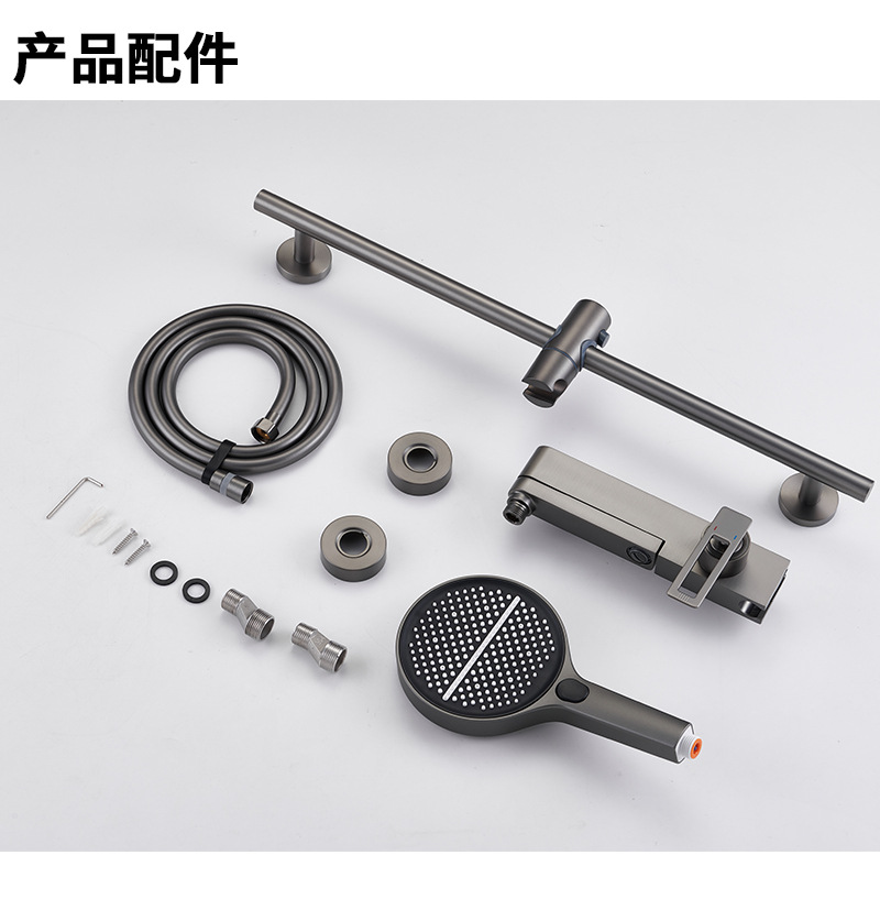 리프팅로드가있는 모든 구리 고온 및 냉간 혼합 밸브 수도꼭지를 세트 비 탑 스프레이 분할 간단한 총 회색 욕조 샤워