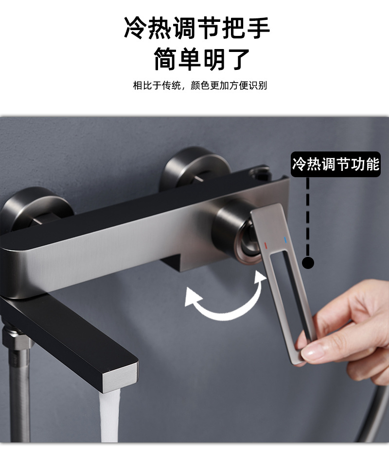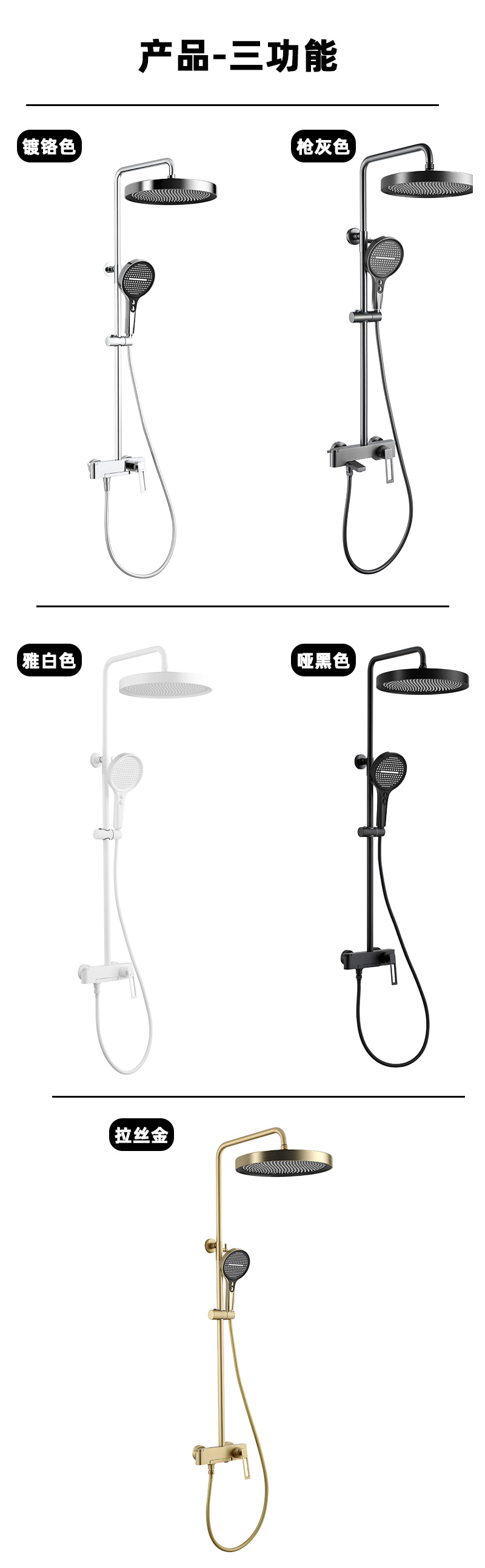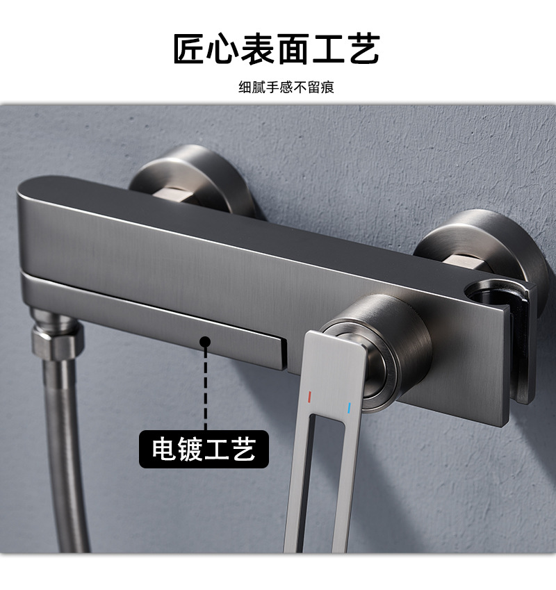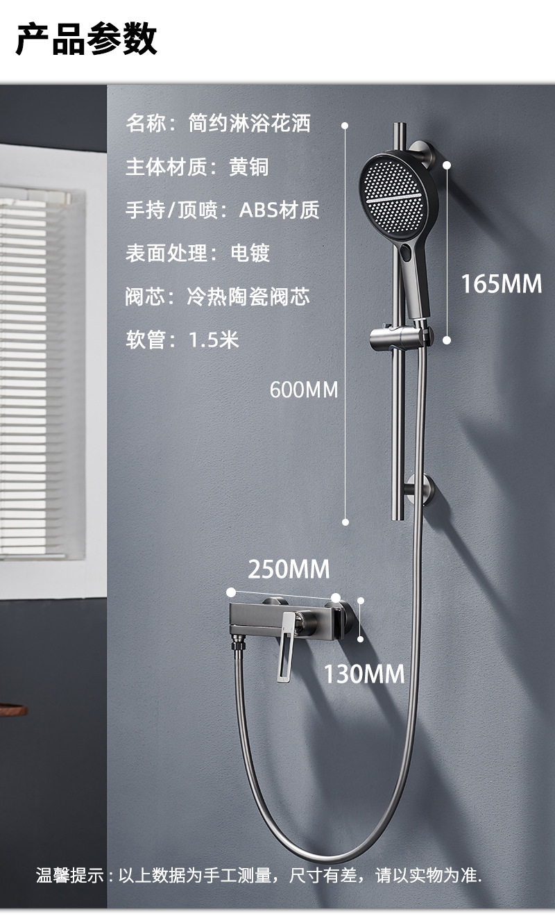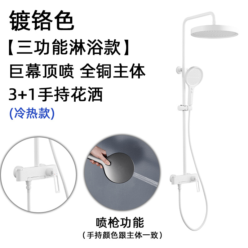 리프팅로드가있는 모든 구리 고온 및 냉간 혼합 밸브 수도꼭지를 세트 비 탑 스프레이 분할 간단한 총 회색 욕조 샤워