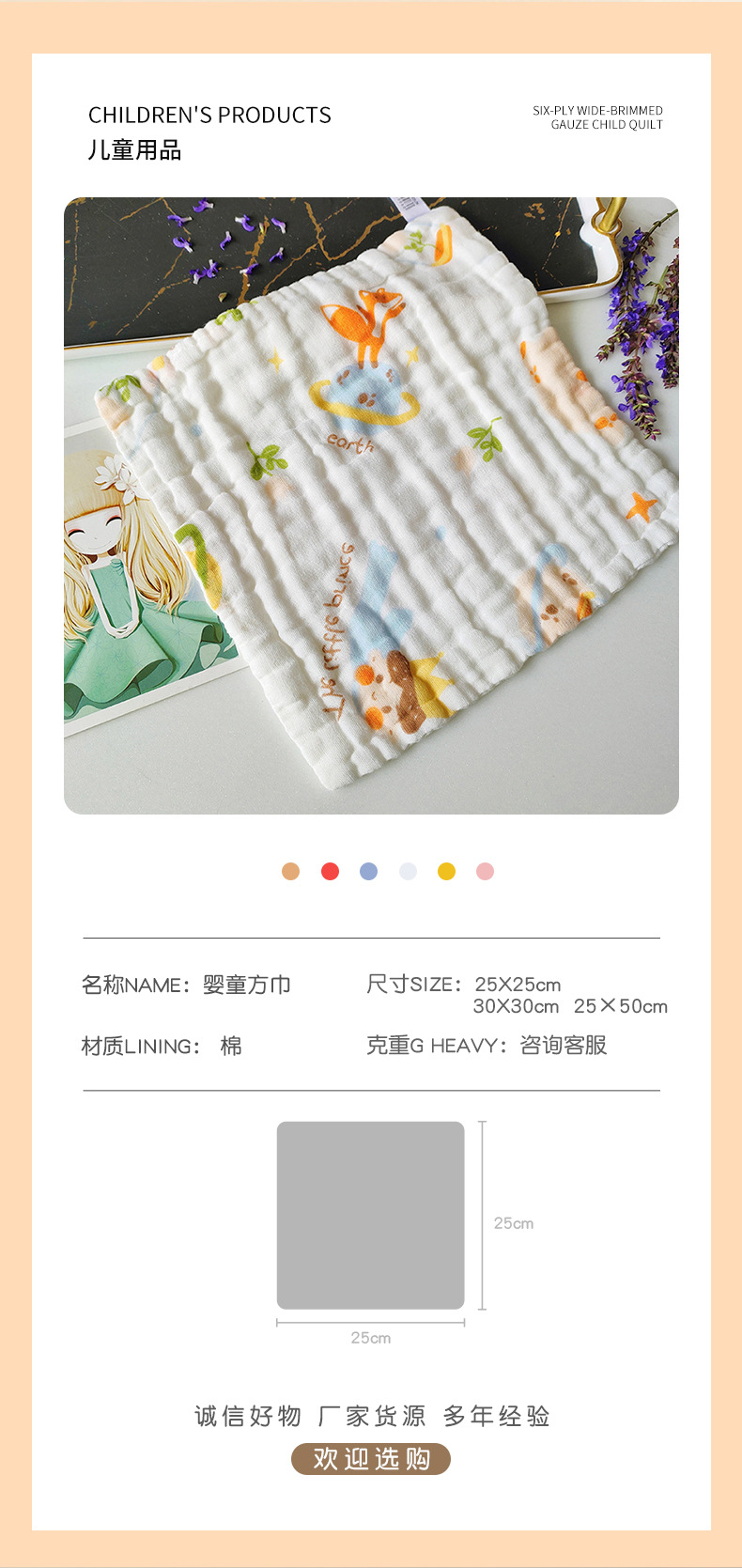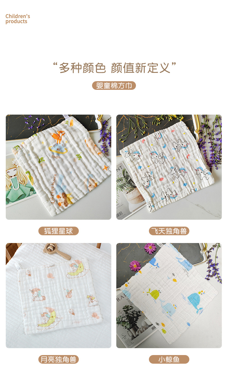 아기 사각 수건 해외 도매 봄 신상 아기 침 흡수 수건 부드럽고 흡수성 좋으며 통기성 좋은 만화 캐릭터 신생아 수건스토어 가기