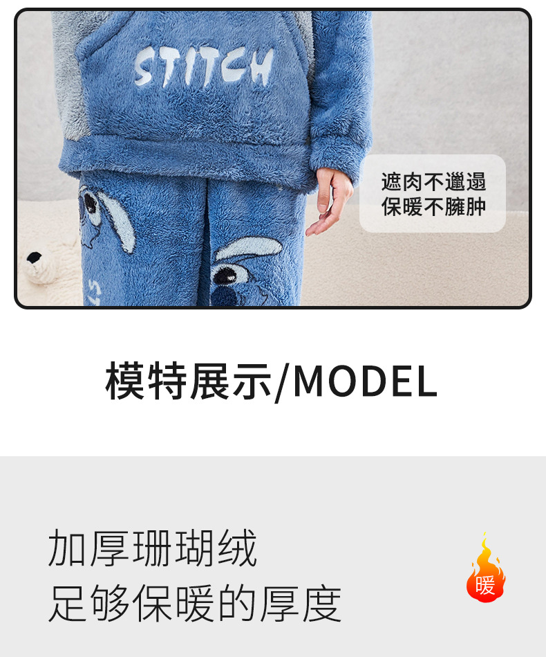 가을과 겨울 산호 양털 남성과 여성의 잠옷 긴팔 후드 만화 플란넬 두꺼운 커플 홈 의류 따뜻한 세트스토어 가기