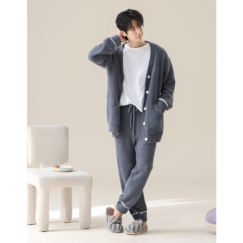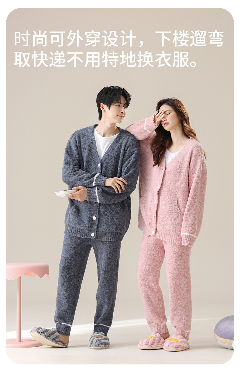 [소프트 하프 벨벳] 새 커플 잠옷 여성 가을과 겨울 두꺼운 따뜻한 남자 홈 의류 세트