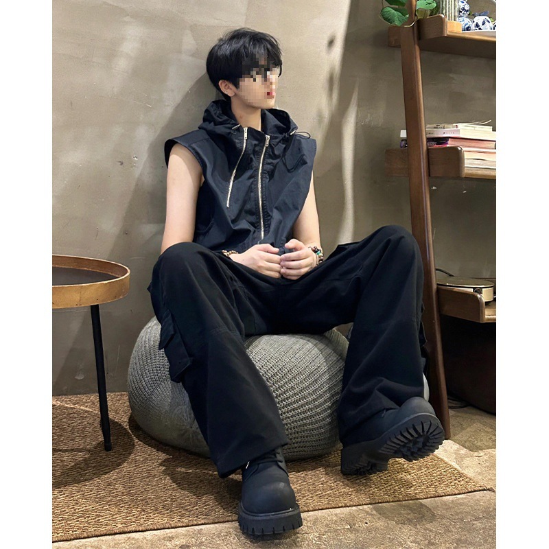 小众解构美式高街机能背心男夏季vibe设计感连帽无袖马甲工装外套스토어 가기