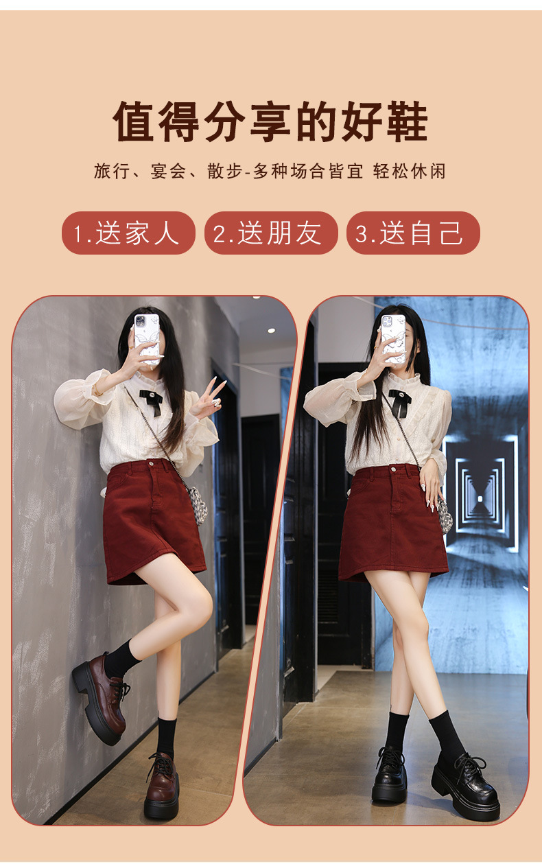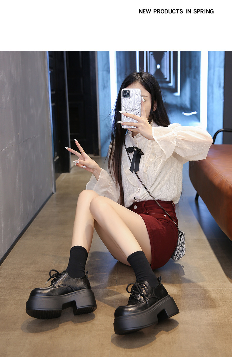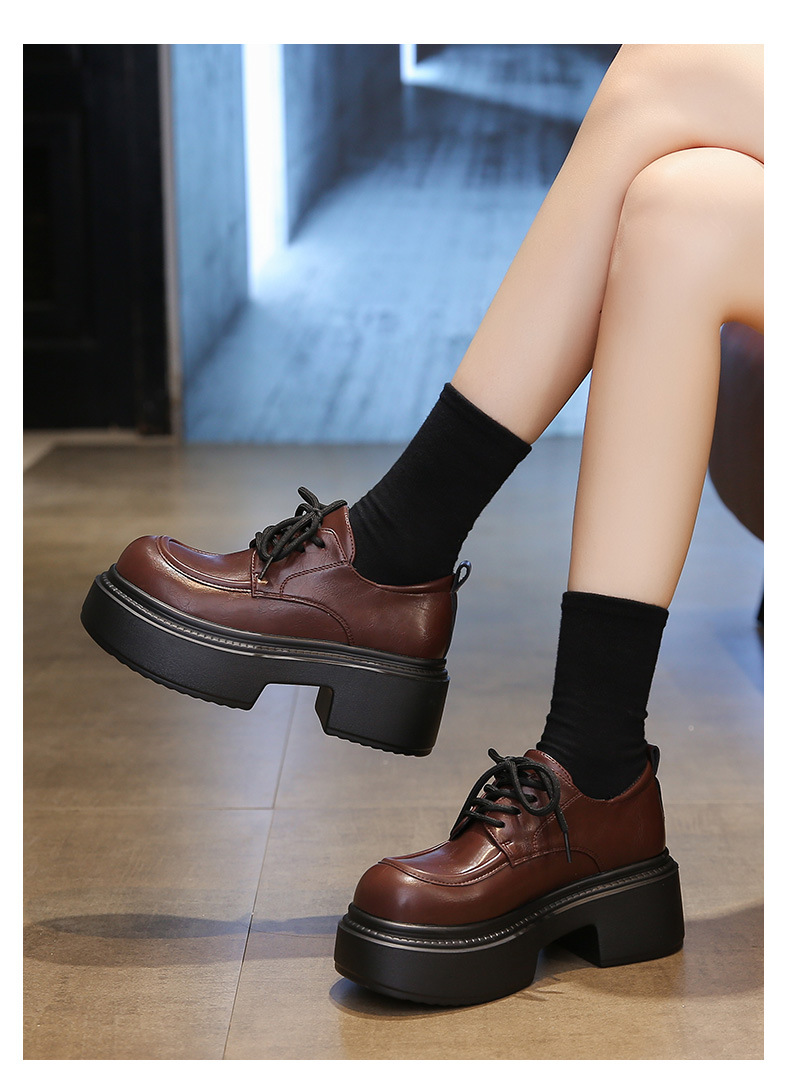 두꺼운 밑창 로퍼 작은 사이즈 33 키높이 가죽 신발 여성용 2025 신상 봄 가을 레트로 하이힐 여성용 단화스토어 가기