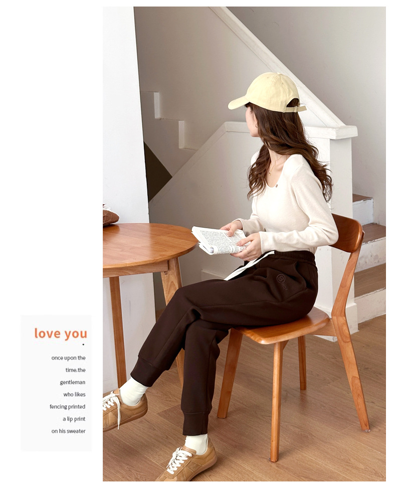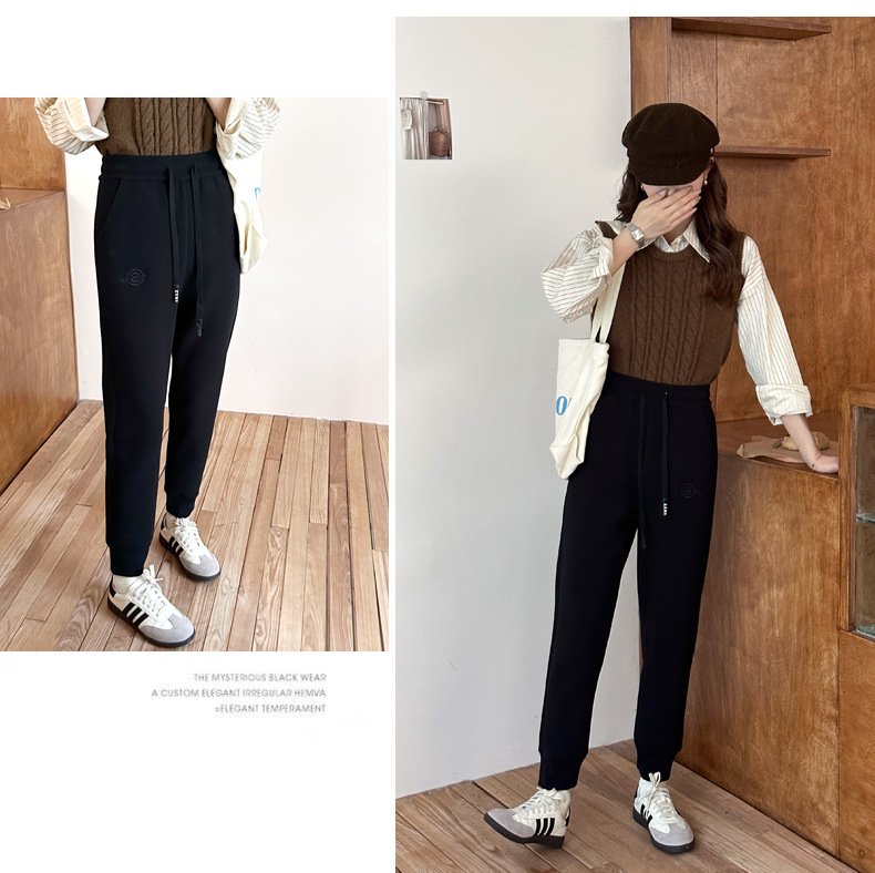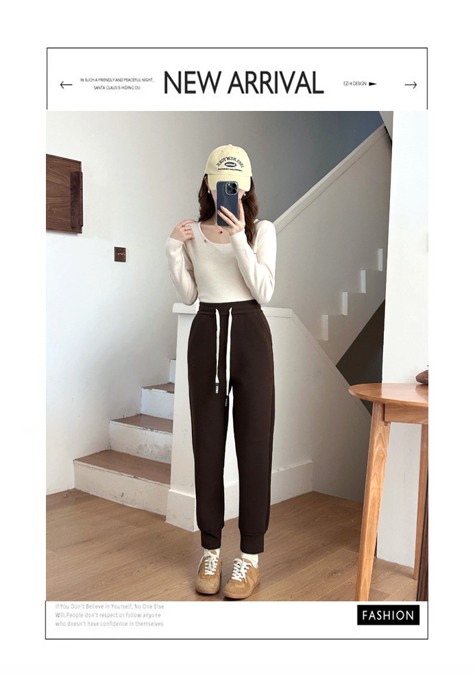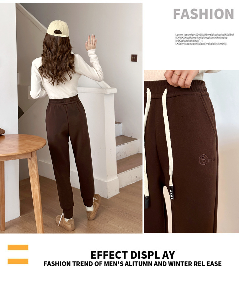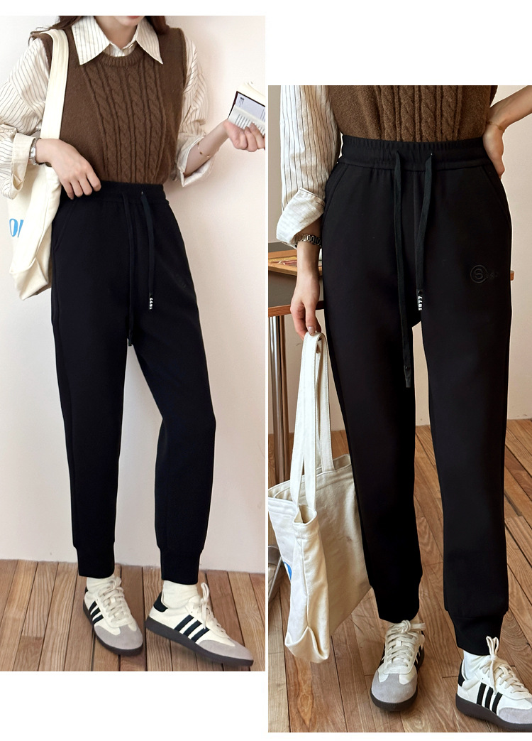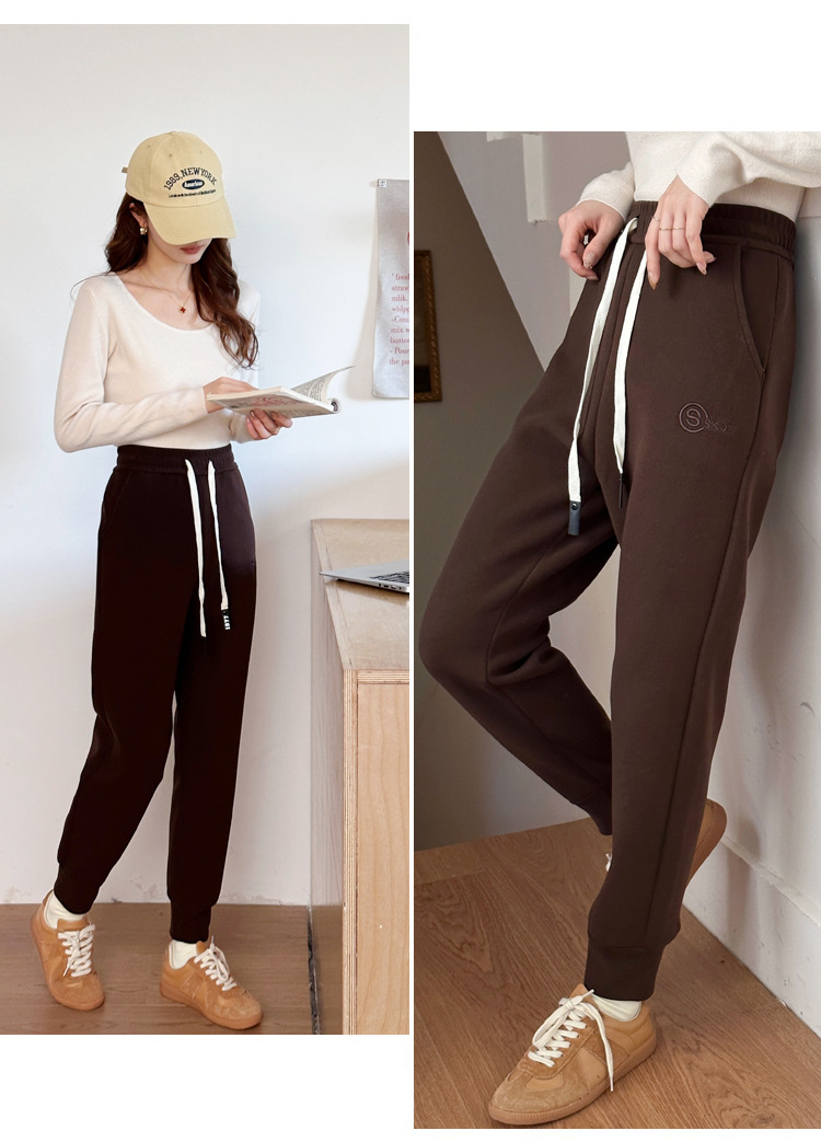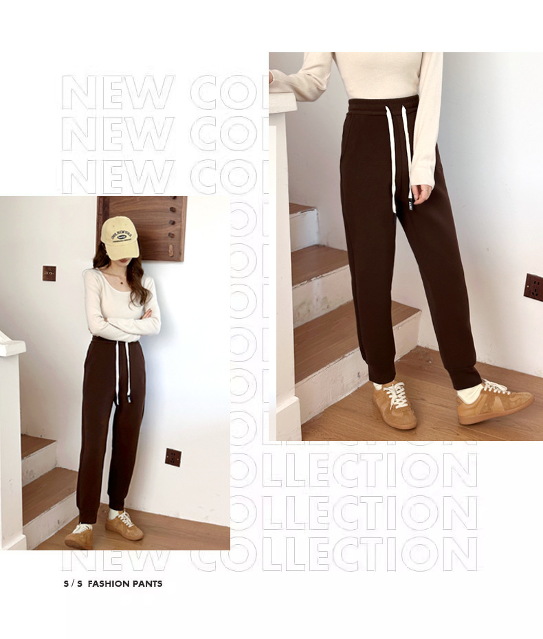 여자 울 실크 방풍 바지 겨울 기모 두꺼운 울 실크 높은 허리 슬리밍 느슨한 스포츠 캐주얼 바지스토어 가기