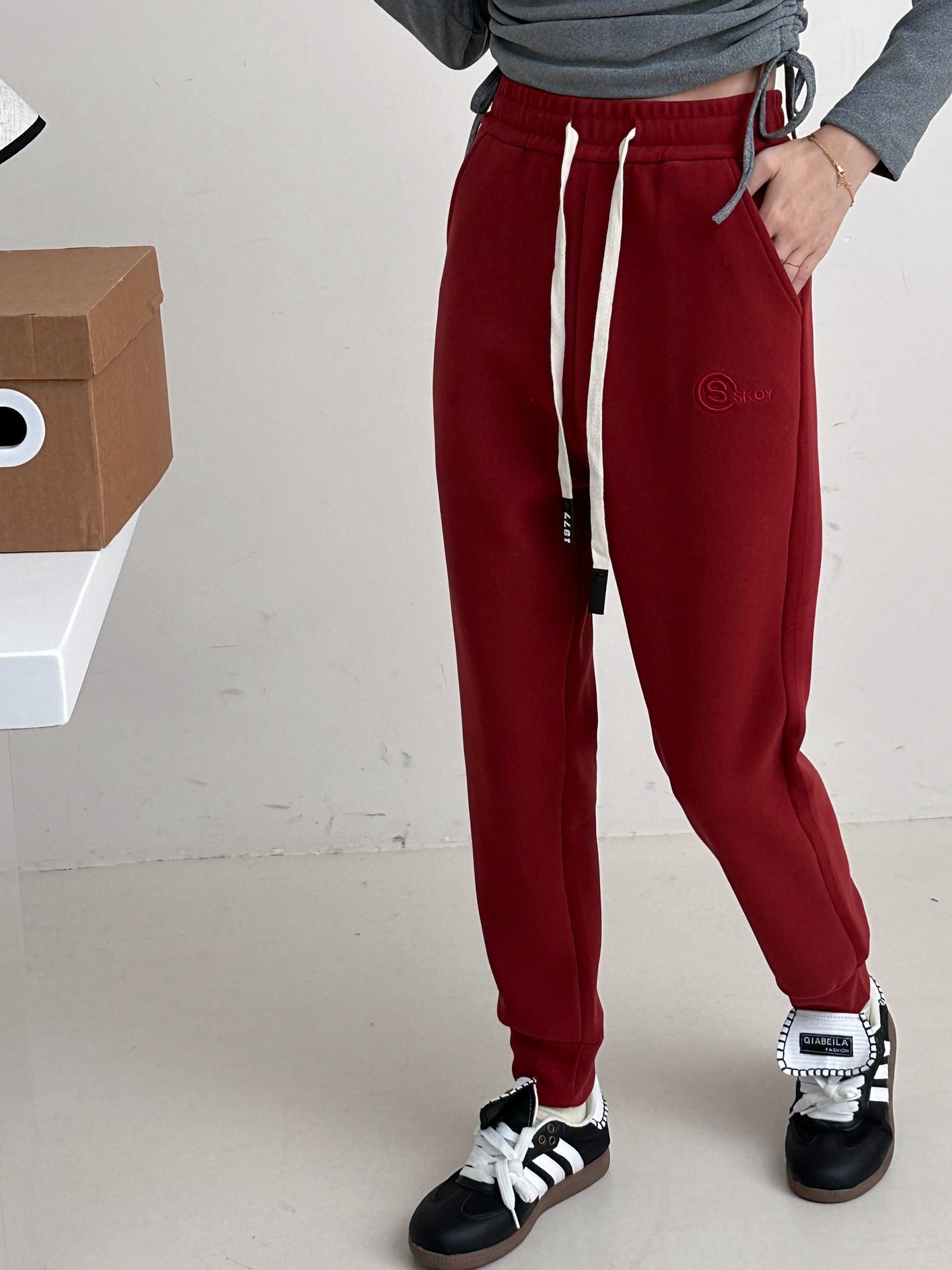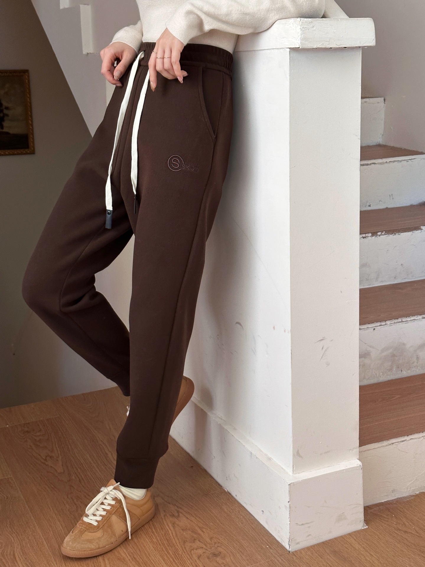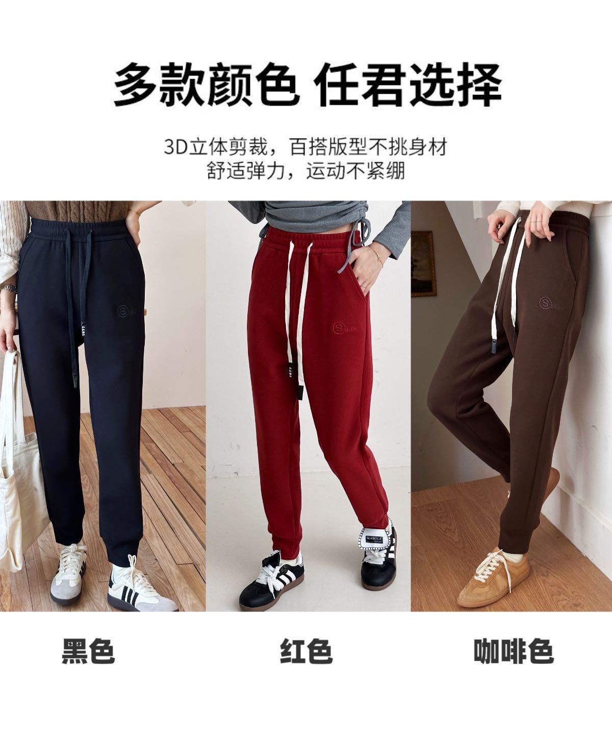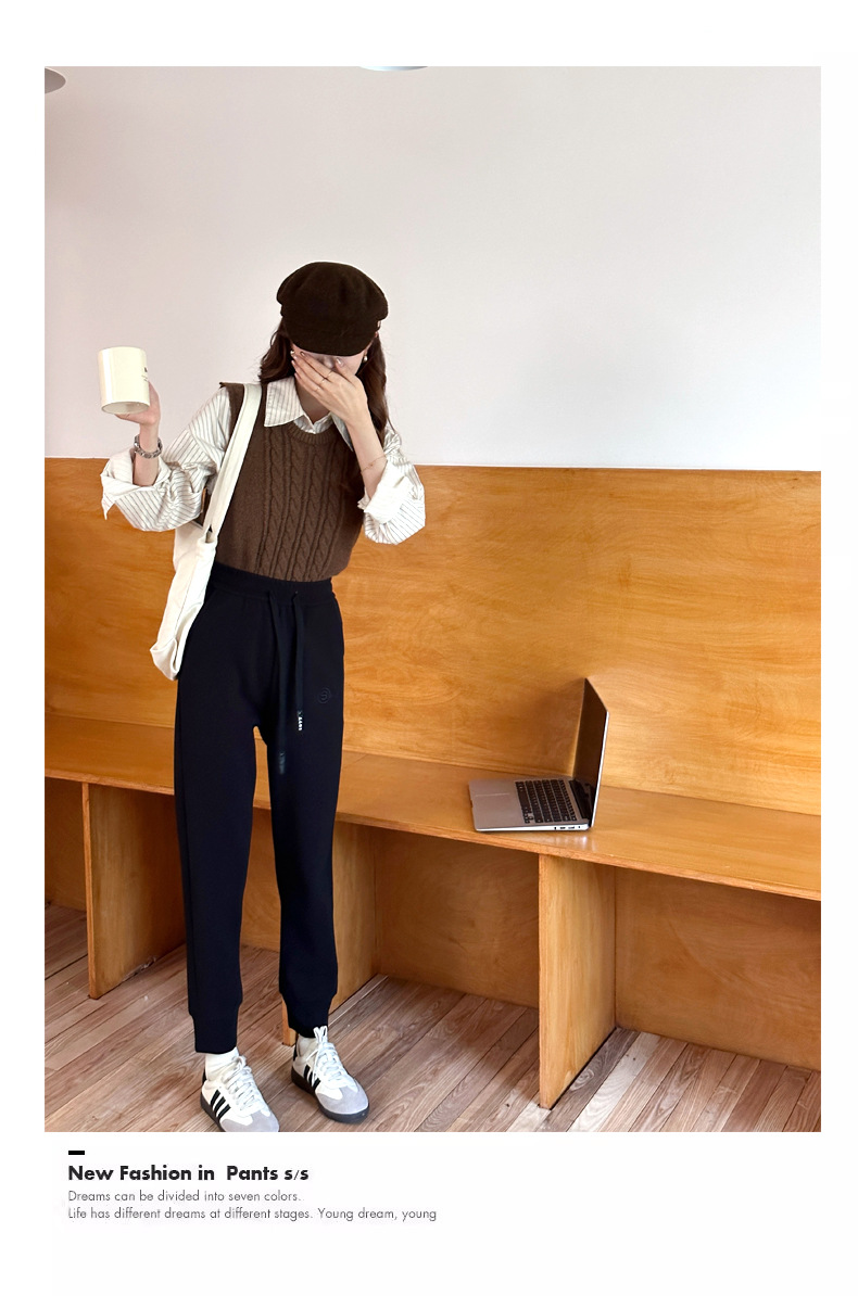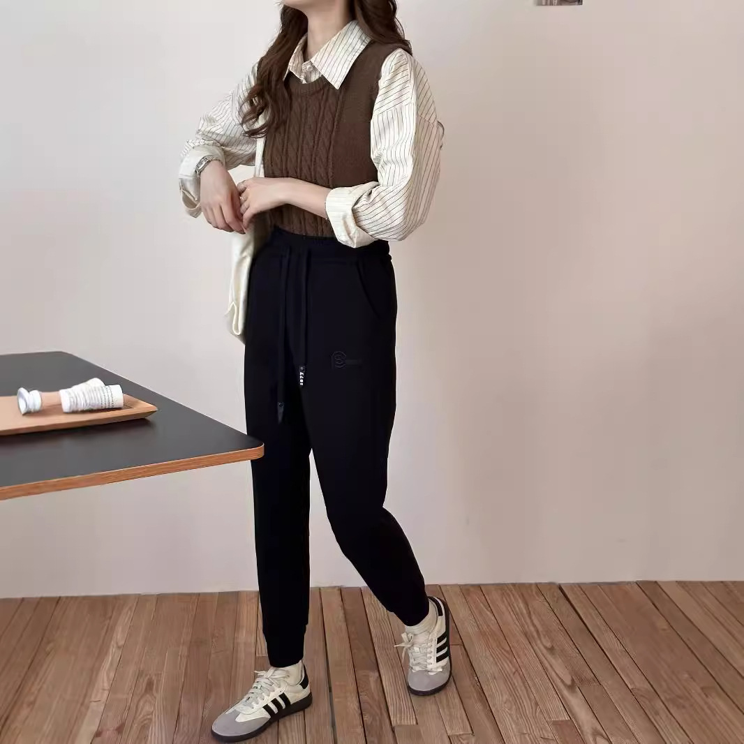 여자 울 실크 방풍 바지 겨울 기모 두꺼운 울 실크 높은 허리 슬리밍 느슨한 스포츠 캐주얼 바지스토어 가기