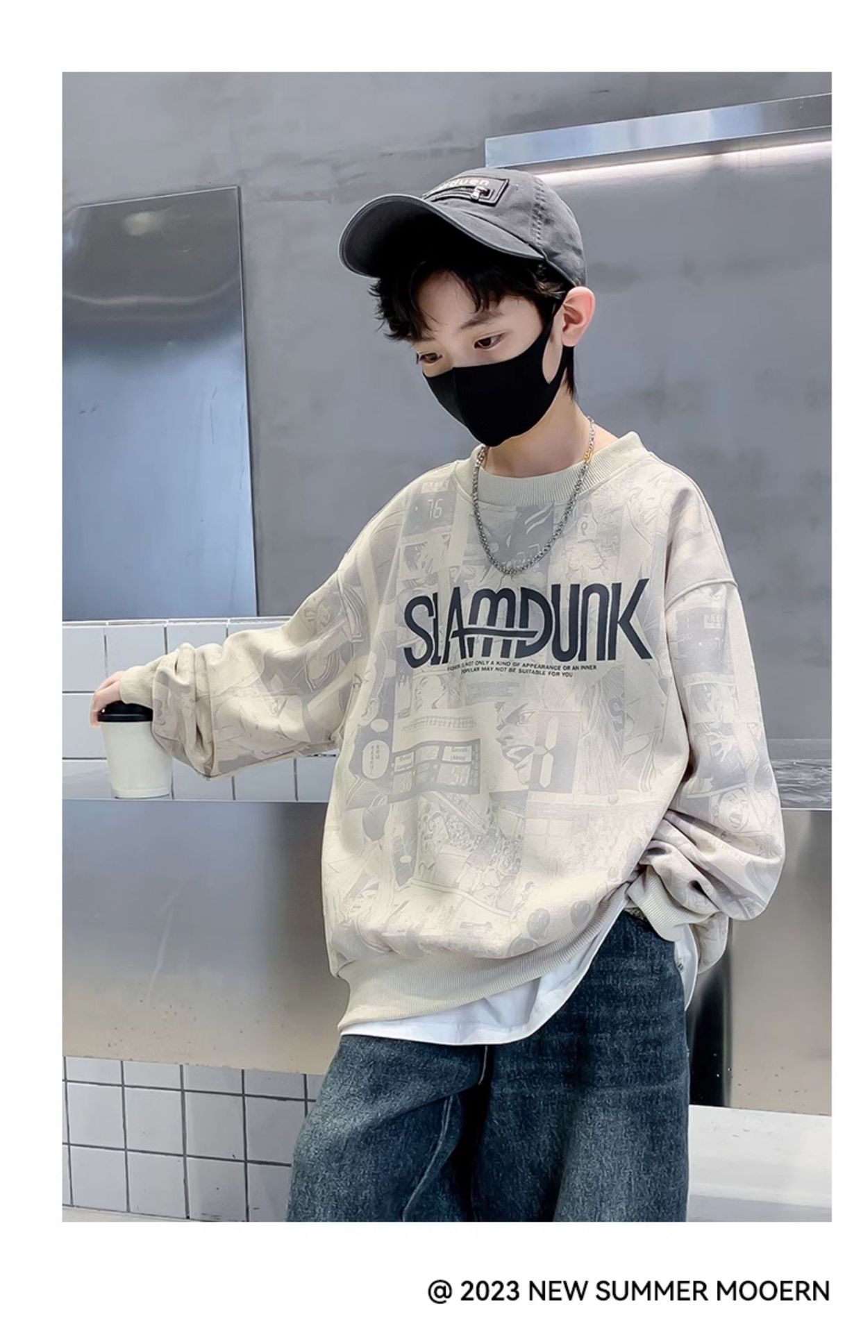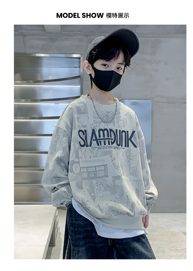 가을 2024 새로운 어린이 캐주얼 패션 스웨트 셔츠 중소 소년 만화 인쇄 라운드 넥 스포츠 원피스 탑