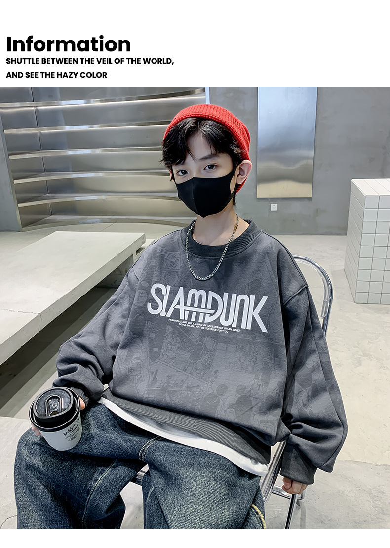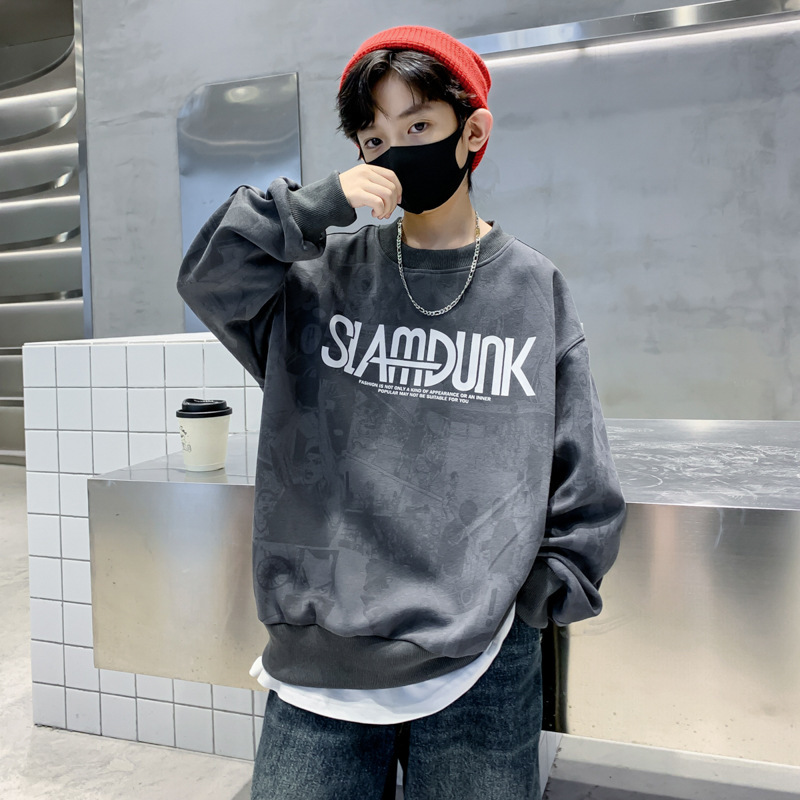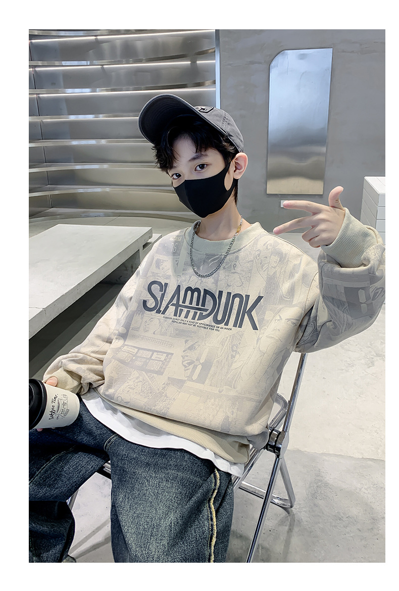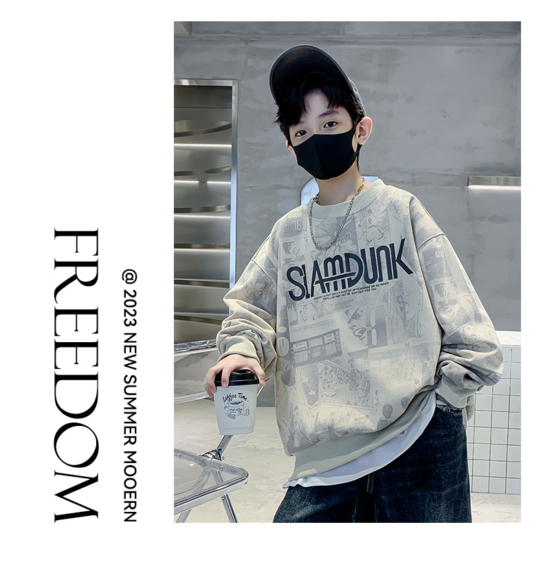 가을 2024 새로운 어린이 캐주얼 패션 스웨트 셔츠 중소 소년 만화 인쇄 라운드 넥 스포츠 원피스 탑스토어 가기
