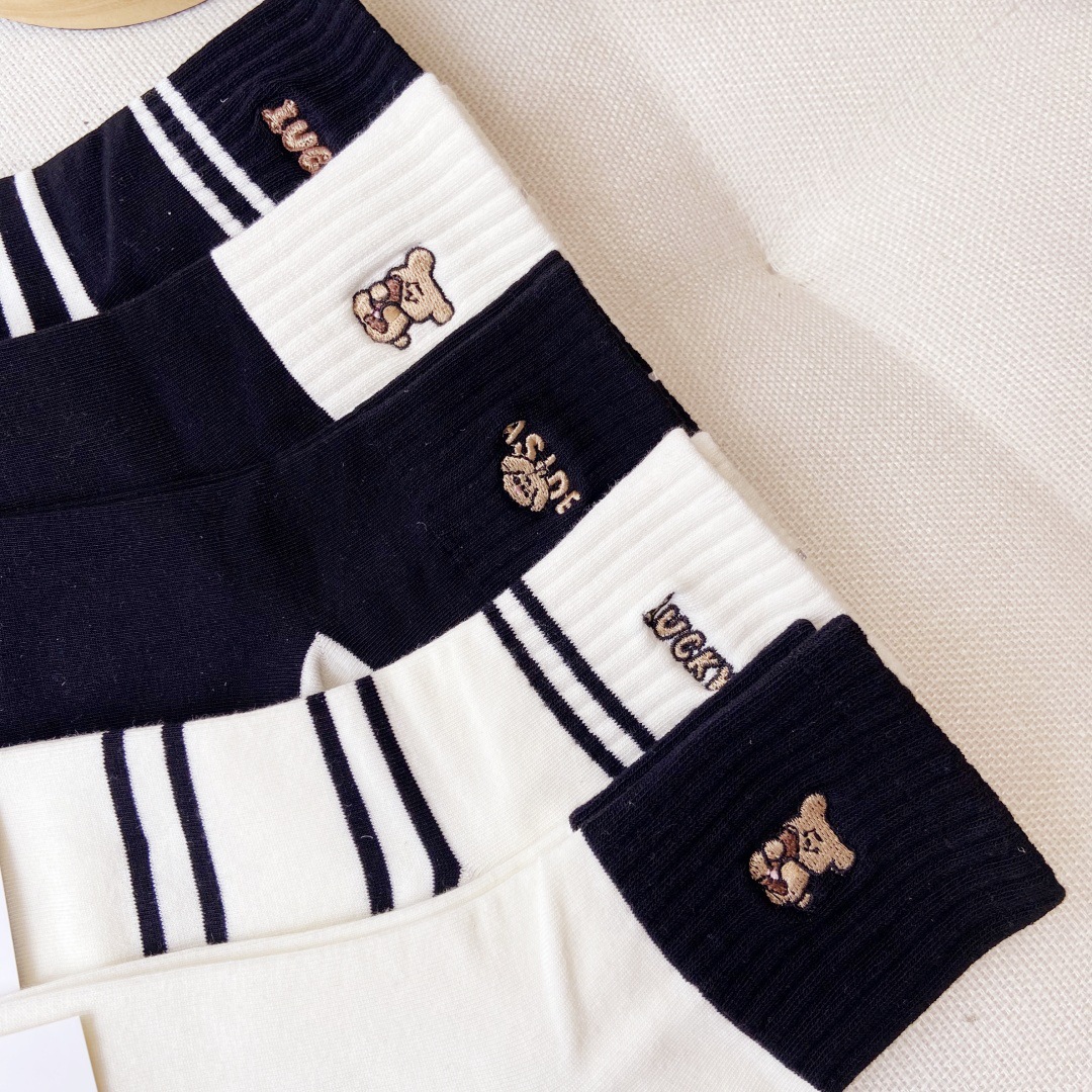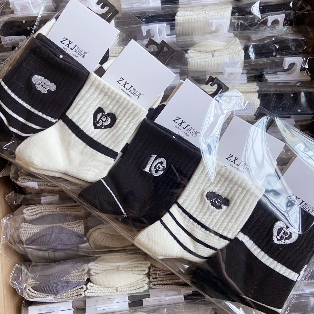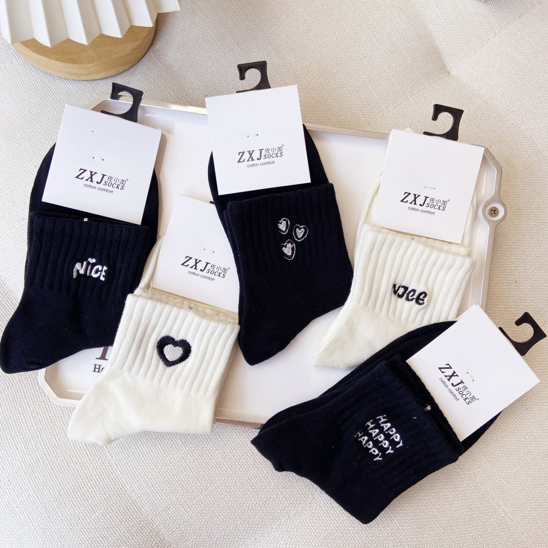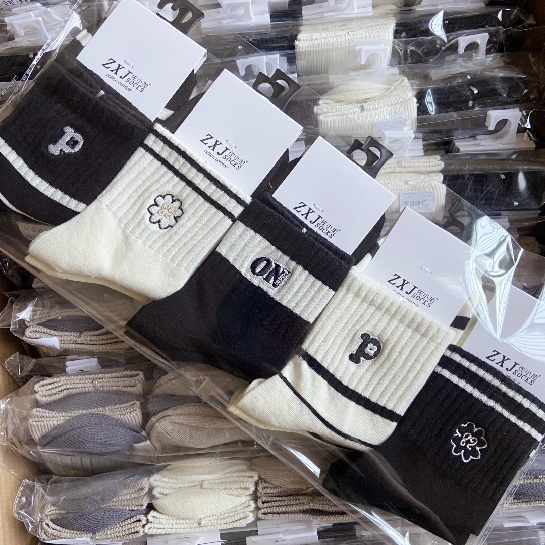 간단한 편지 캐주얼 스포츠 남성 양말 패션 트렌드 흑백 양말 남성 가을 및 겨울 중간 튜브 대학 스타일 코튼 양말스토어 가기