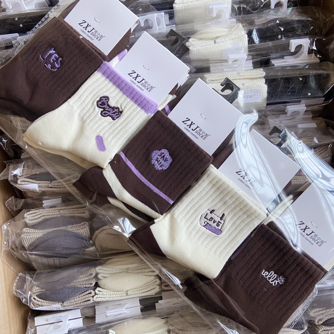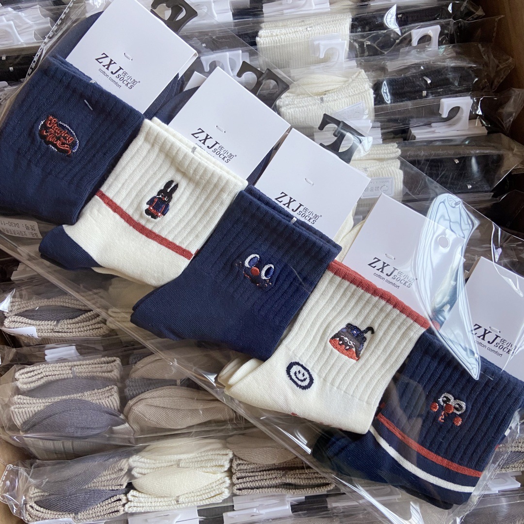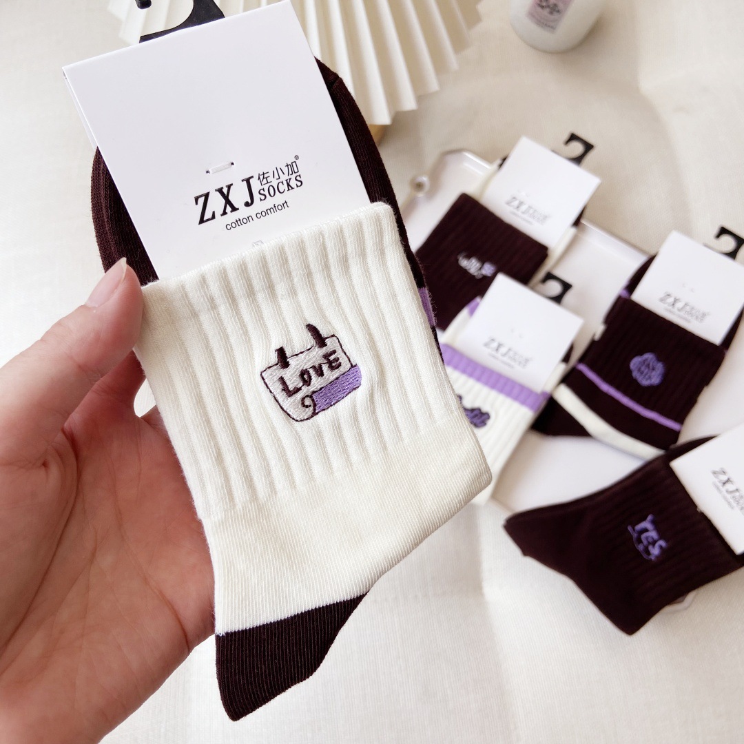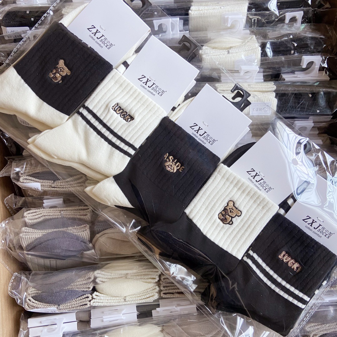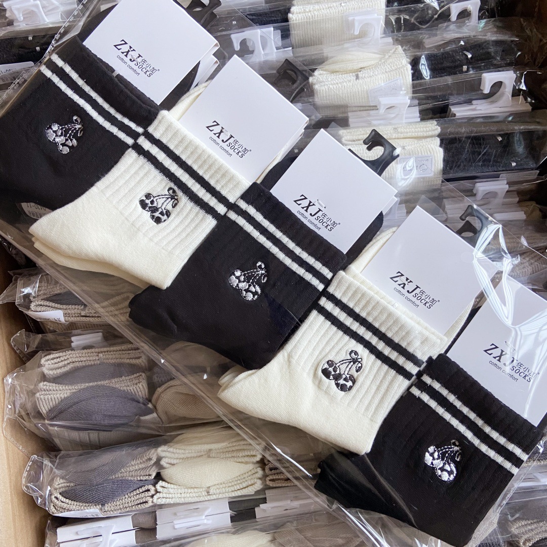 간단한 편지 캐주얼 스포츠 남성 양말 패션 트렌드 흑백 양말 남성 가을 및 겨울 중간 튜브 대학 스타일 코튼 양말스토어 가기