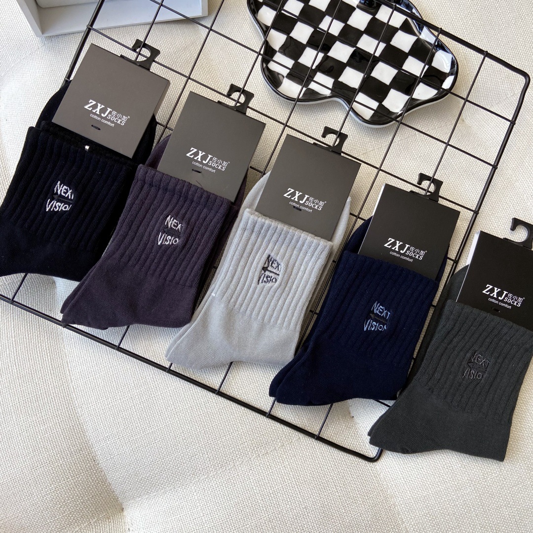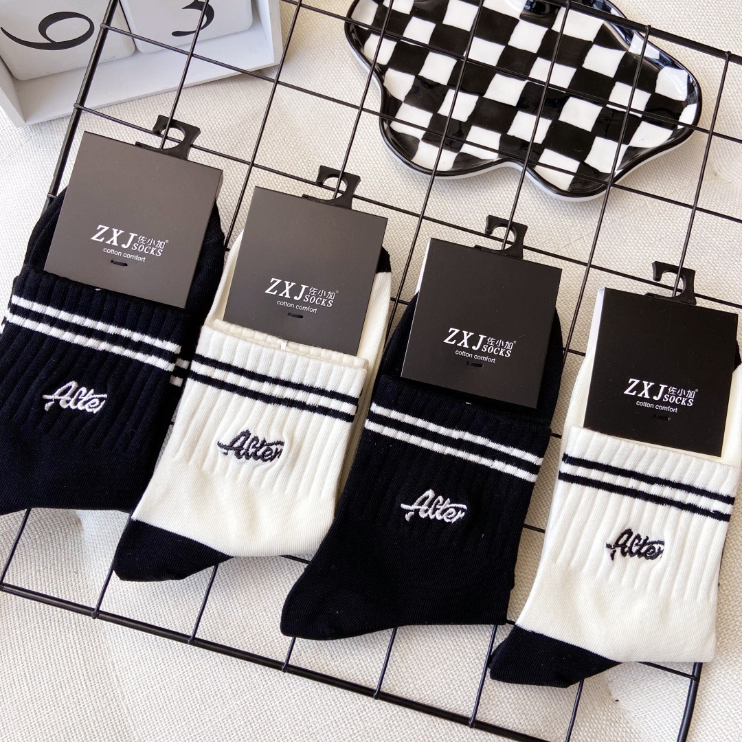 간단한 편지 캐주얼 스포츠 남성 양말 패션 트렌드 흑백 양말 남성 가을 및 겨울 중간 튜브 대학 스타일 코튼 양말