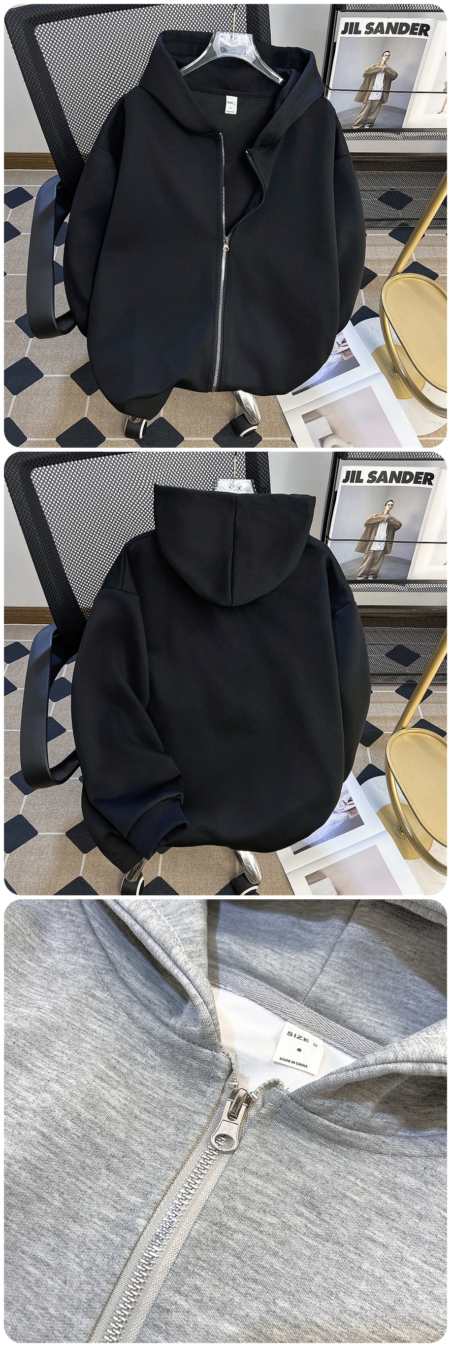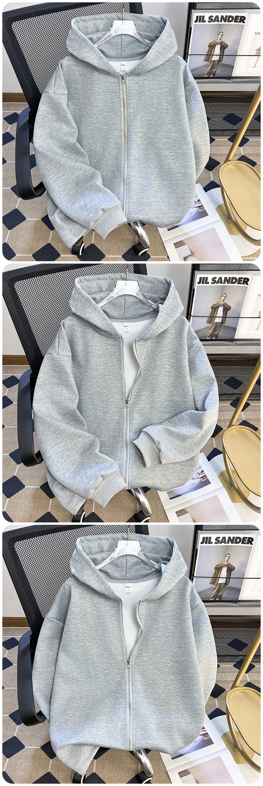 그레이 더블 지퍼 카디건 스웨터 남자 봄과 가을 하이 엔드 클린 핏 재킷 헤비 트렌디 후디스토어 가기
