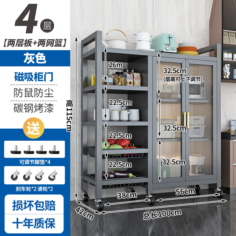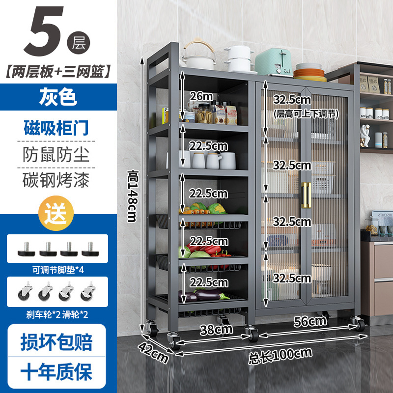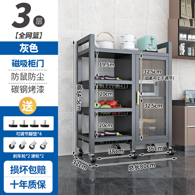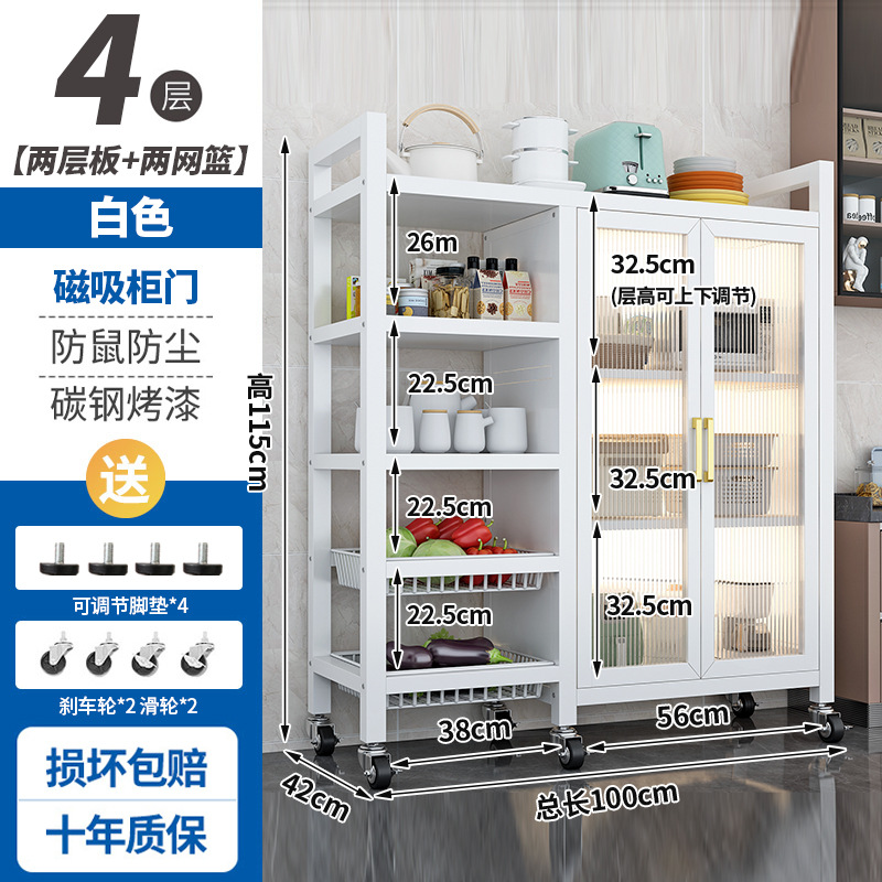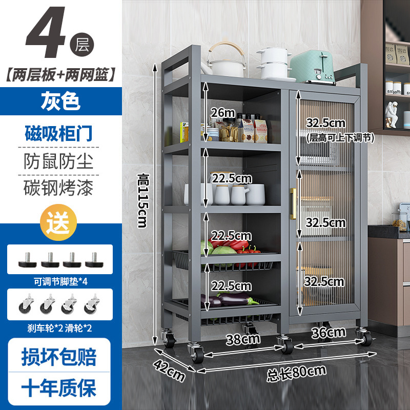 주방 식품 바구니 문 저장 랙 바닥 다층 더블 도어 전기 기기 저장 캐비닛 다기능 주방용품 보관 캐비닛스토어 가기
