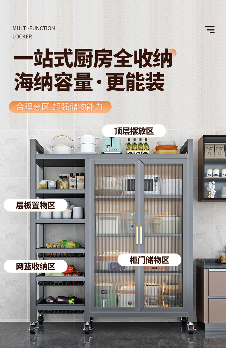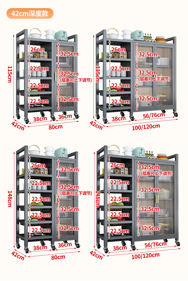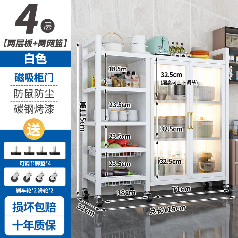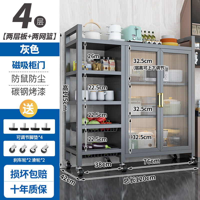 주방 식품 바구니 문 저장 랙 바닥 다층 더블 도어 전기 기기 저장 캐비닛 다기능 주방용품 보관 캐비닛스토어 가기