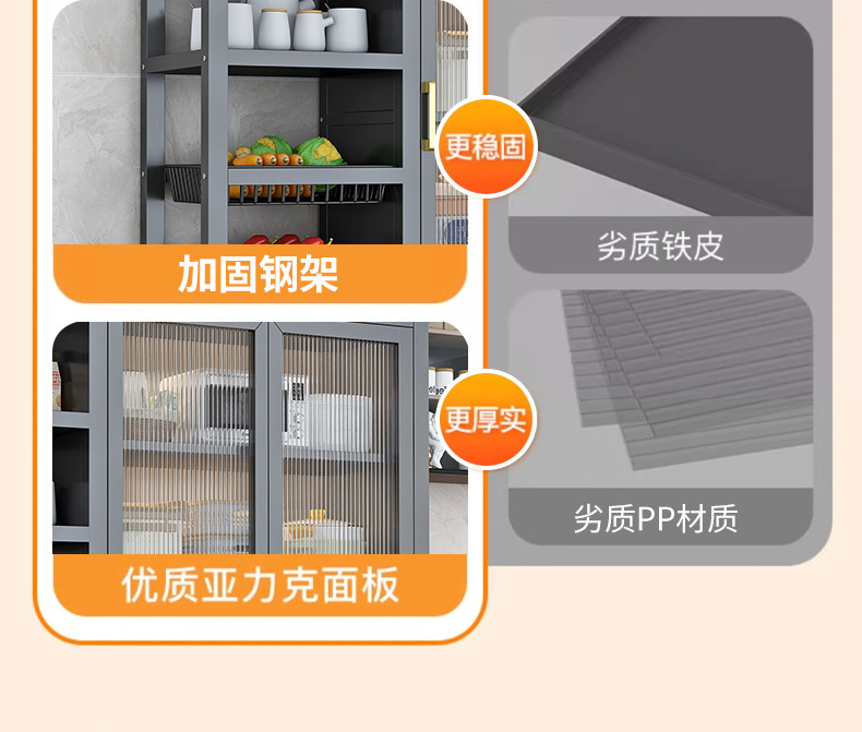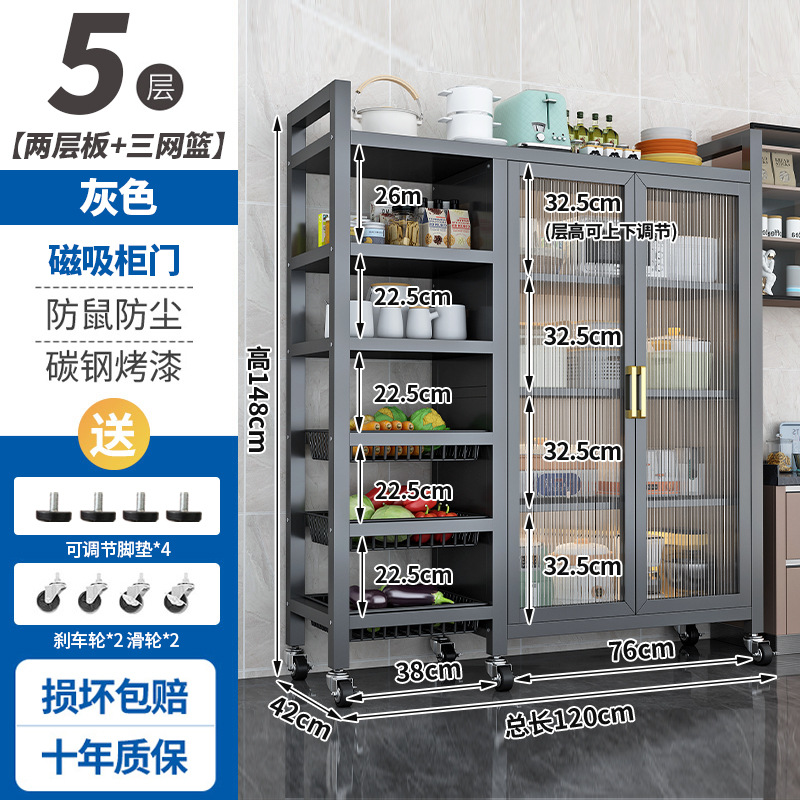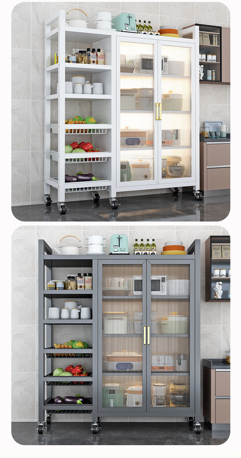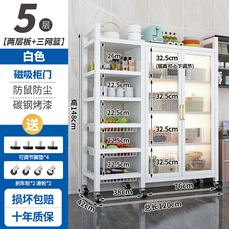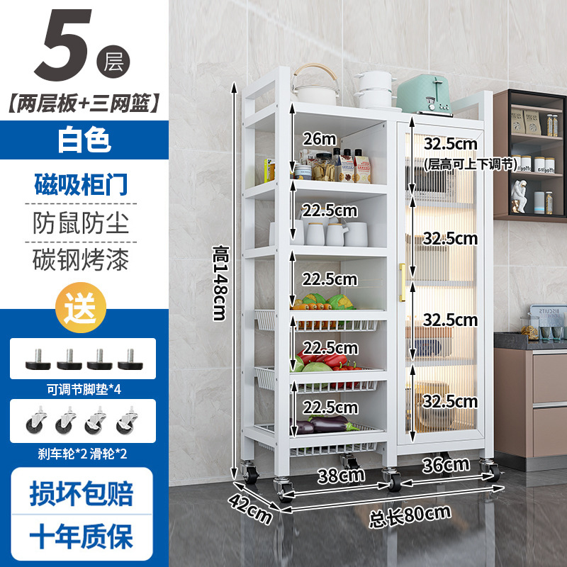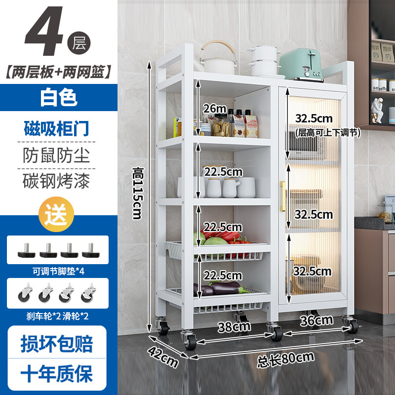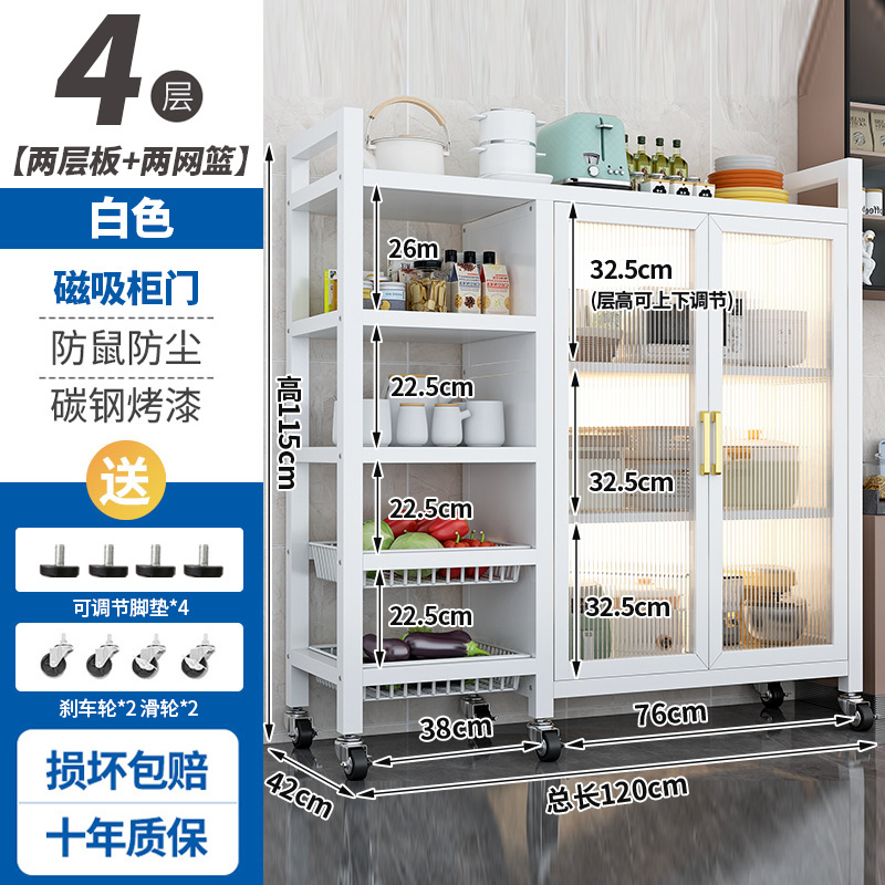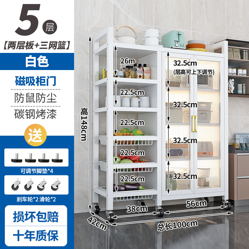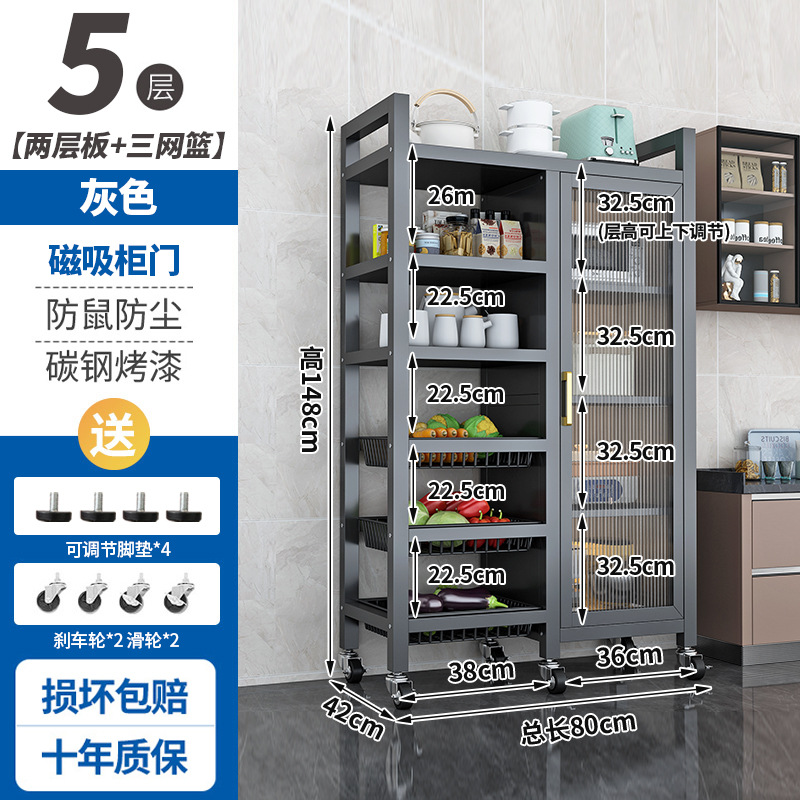 주방 식품 바구니 문 저장 랙 바닥 다층 더블 도어 전기 기기 저장 캐비닛 다기능 주방용품 보관 캐비닛