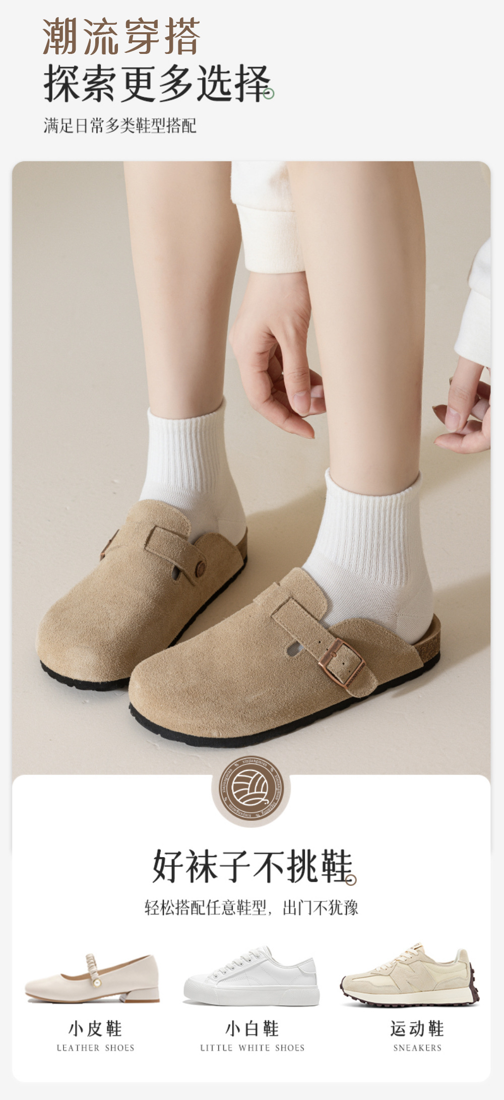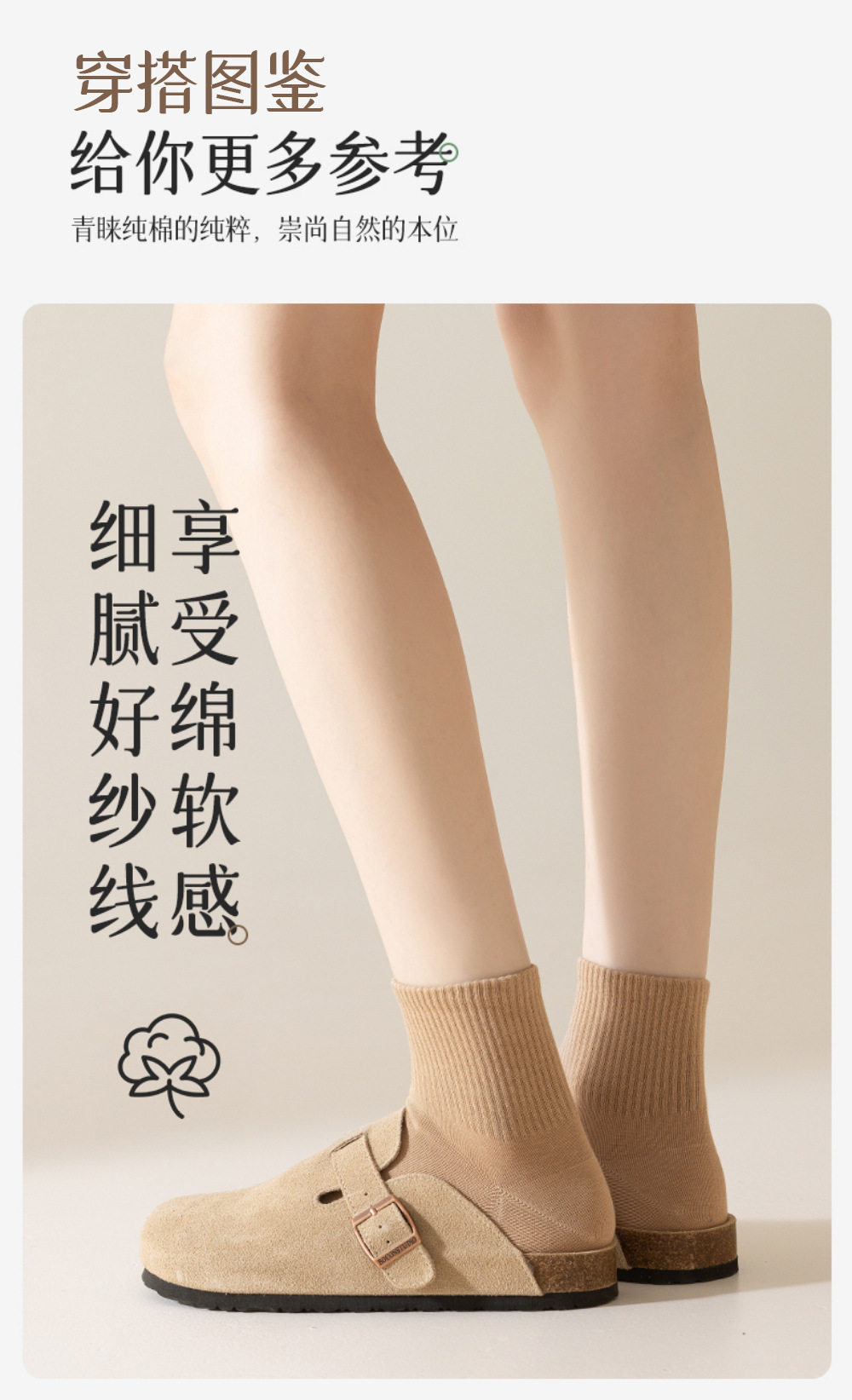 여성용 순면 메일라드 중간길이 양말, 버켄스탁 신발과 함께 착용하는 무봉제 보풀방지 여성 양말, 주지 양말스토어 가기