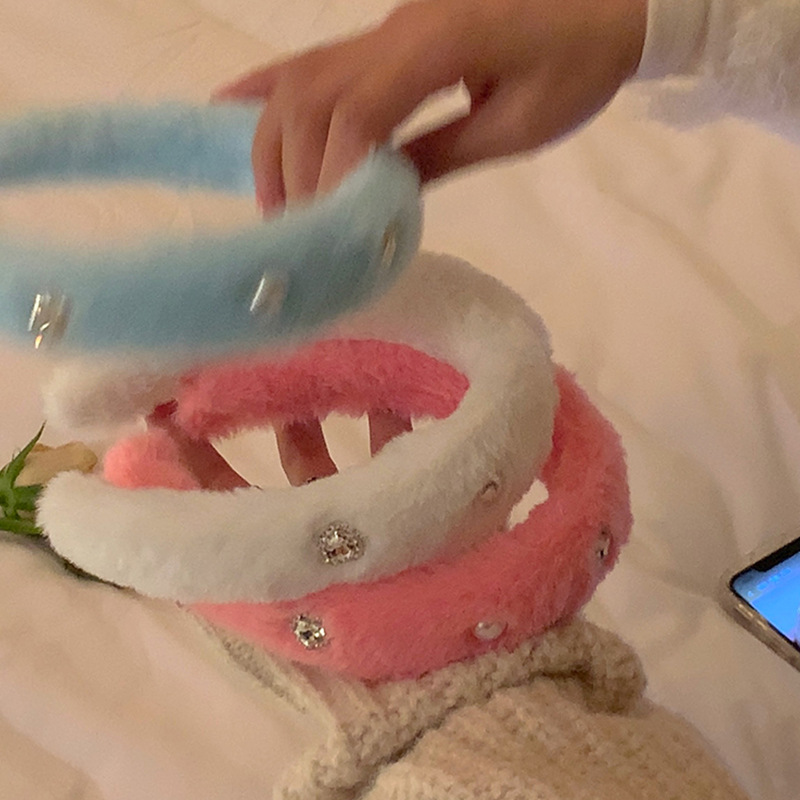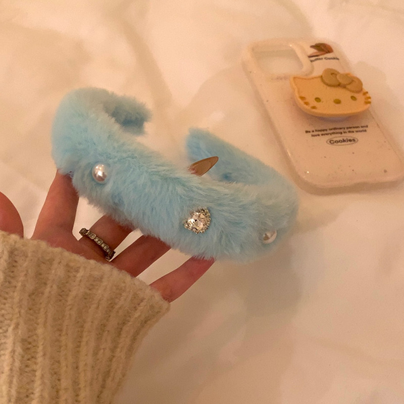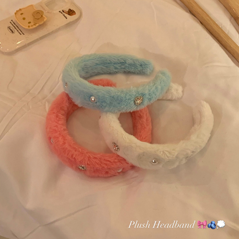 가을과 겨울 새로운 캔디 컬러 와이드 브림 플러시 헤드 밴드 다이아몬드 달콤한 귀여운 높은 크랜 탑 압력 헤어 플러시 헤드 밴드스토어 가기