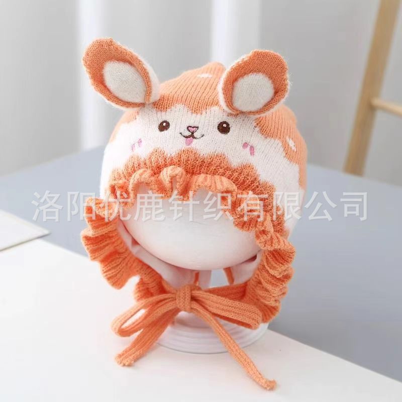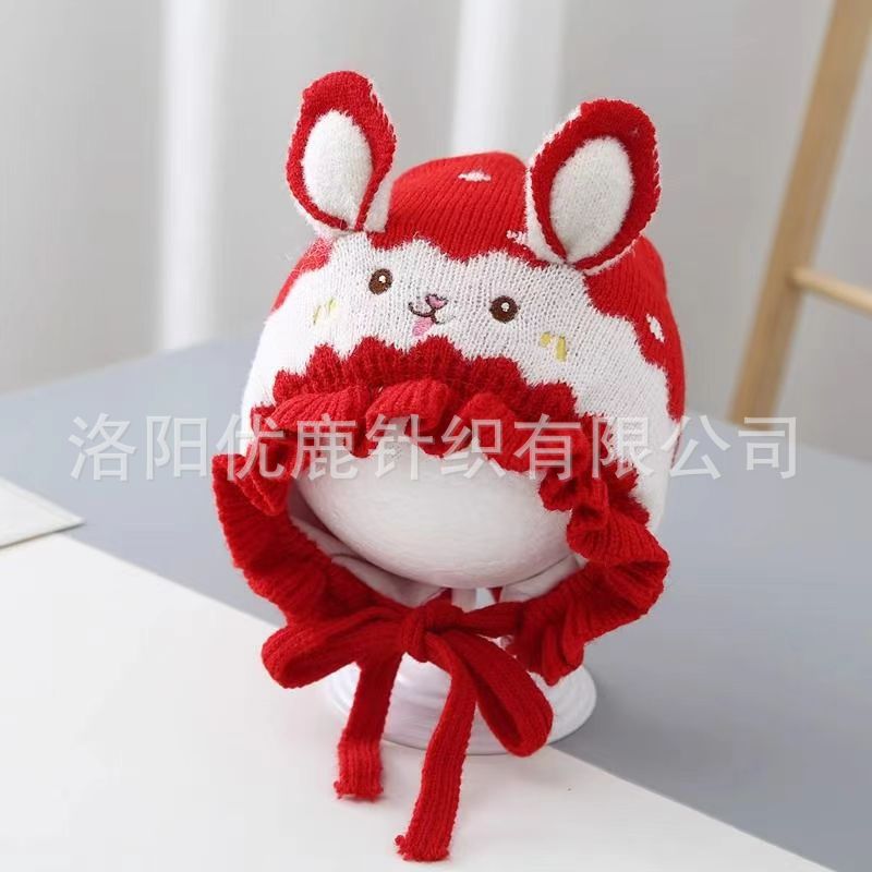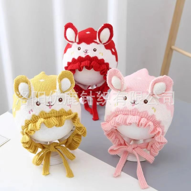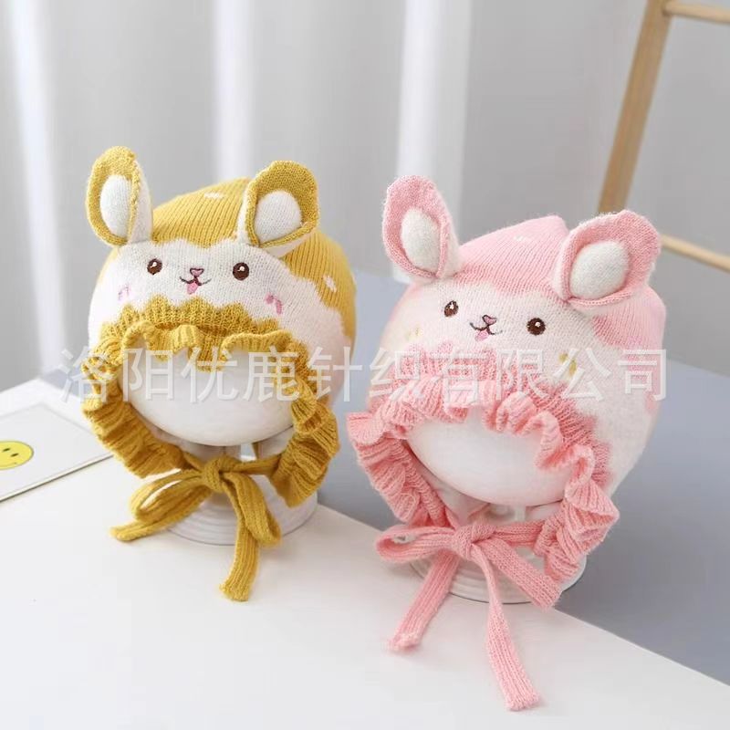 아기 양모 모자 가을과 겨울 귀여운 슈퍼 귀여운 토끼 니트 캡 아기 기모 두꺼운 귀 보호 캡