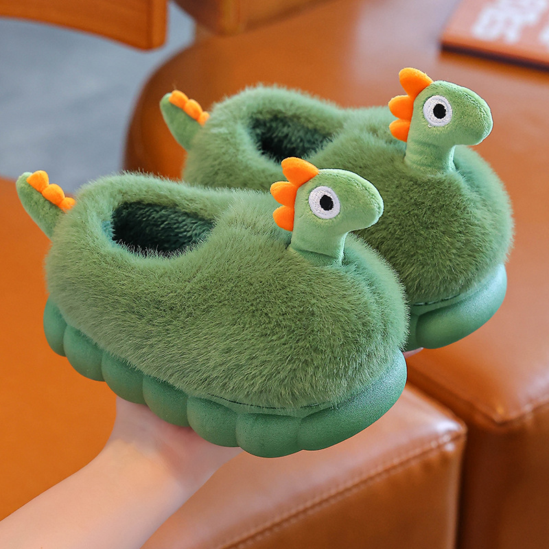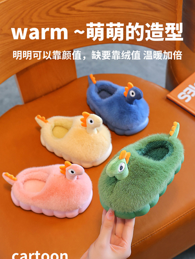 공룡 어린이 면 슬리퍼 소년 가을과 겨울 새로운 여자 방 추가 벨벳 따뜻한 가정 아이 아기 면 슬리퍼