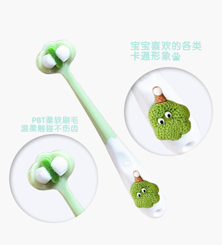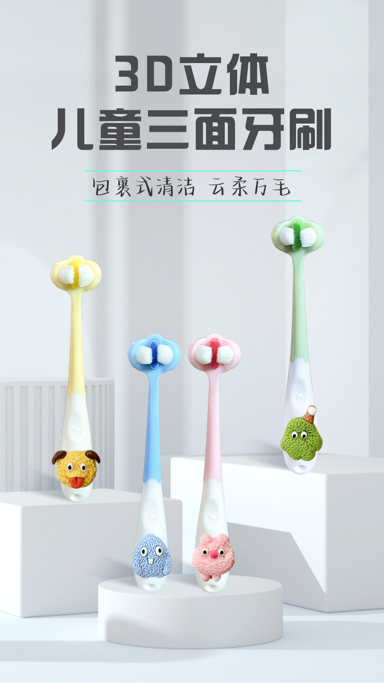 키노 만화 어린이 3 면 칫솔 마오 마오 이상한 3 머리 칫솔 3-12 세 아기 부드러운 칫솔 3D 칫솔