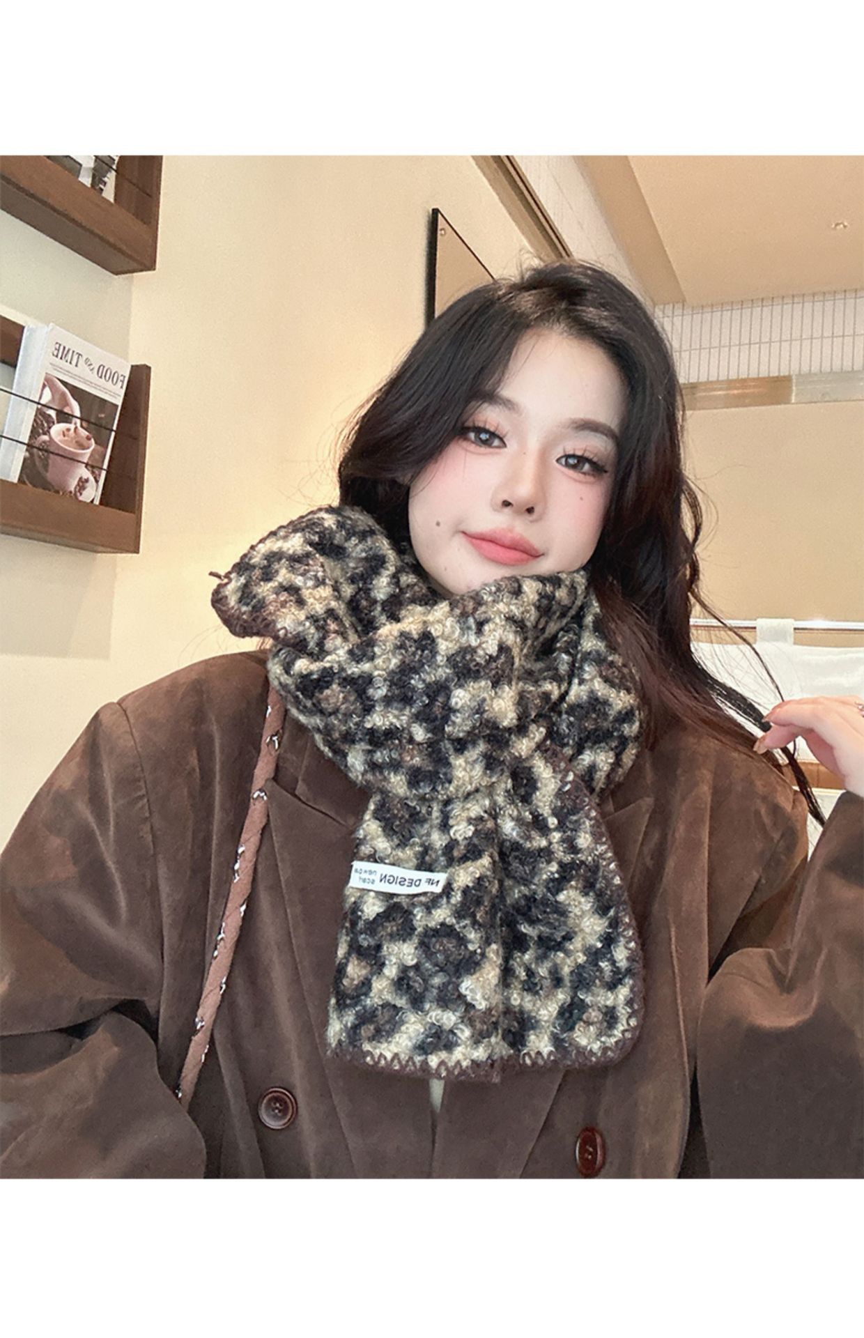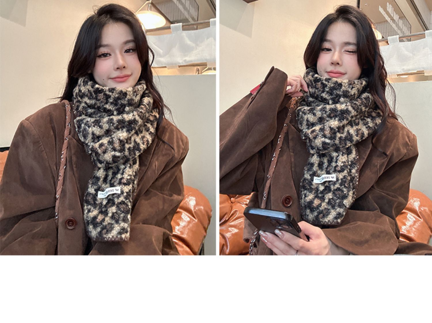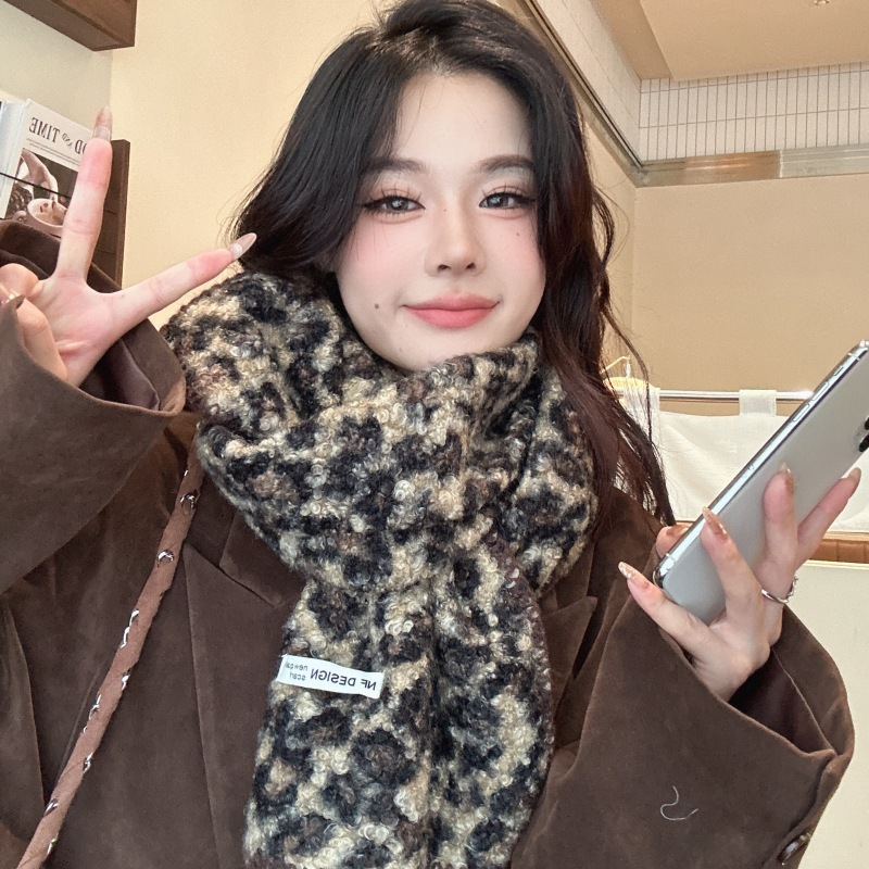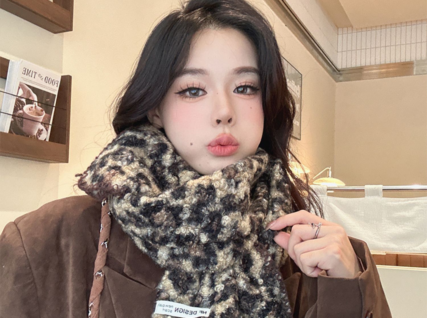 2024 새 스타일 스카프 여자 겨울 한국 스타일 올매치 레오파드 무늬 스카프 고급 모방 캐시미어 두꺼운 따뜻한 큰 목도리스토어 가기