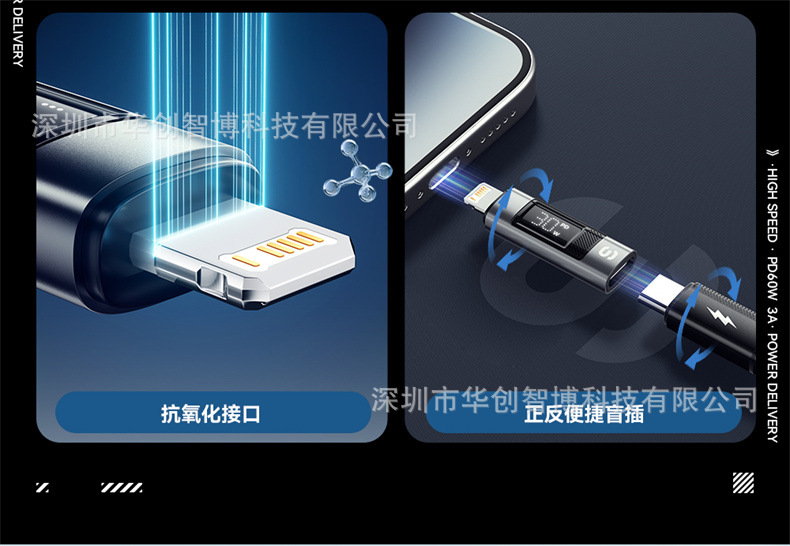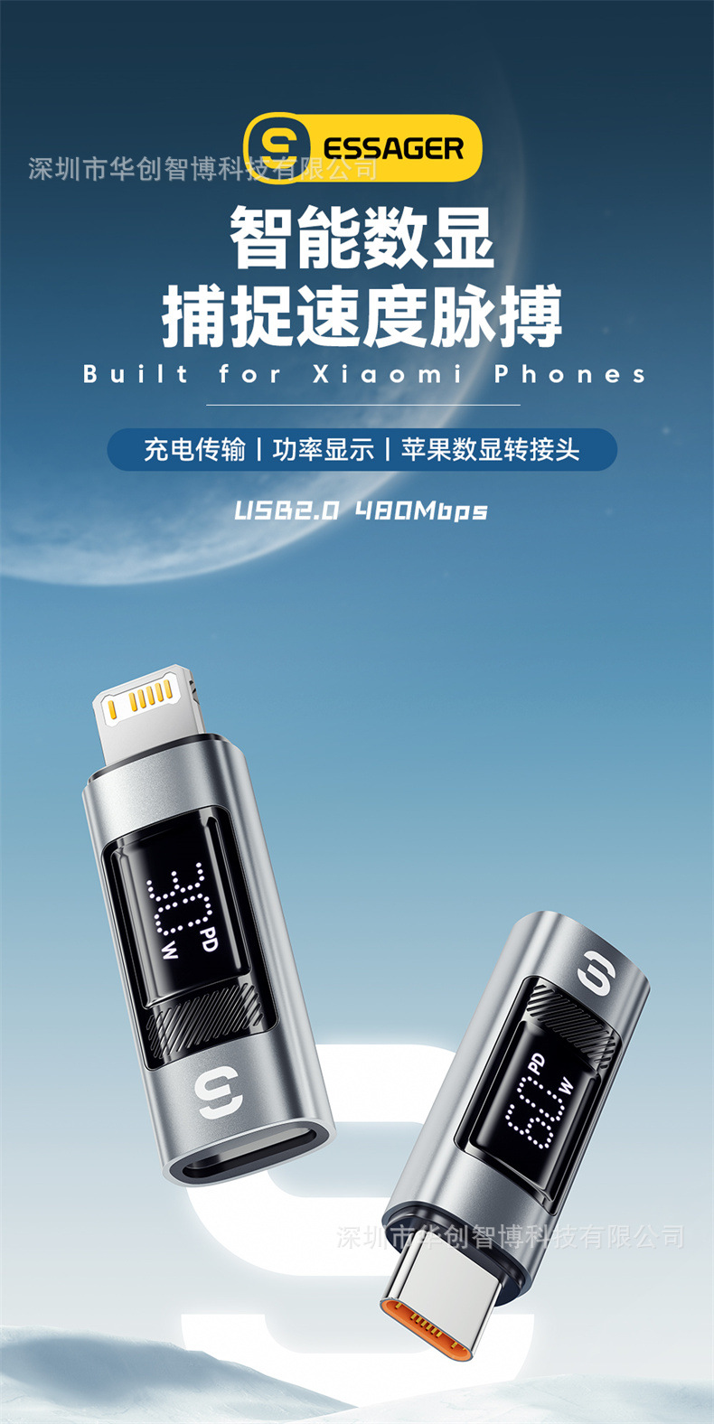 【产品特点】功率数显,苹果安卓秒速切换,智能芯片,多设备快充,接口抗氧化处理,铝合金外壳,正反盲插,精致小巧。