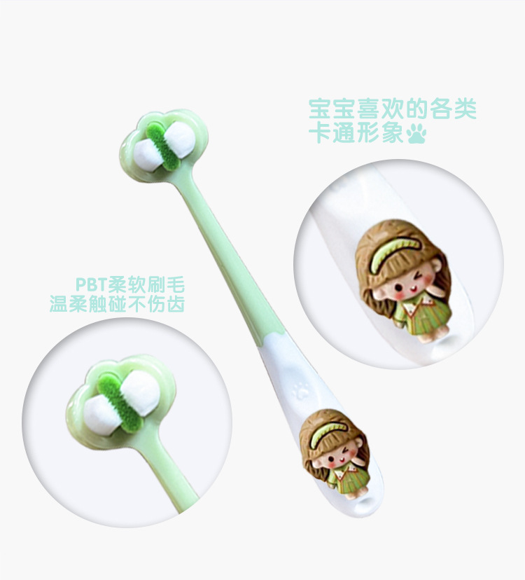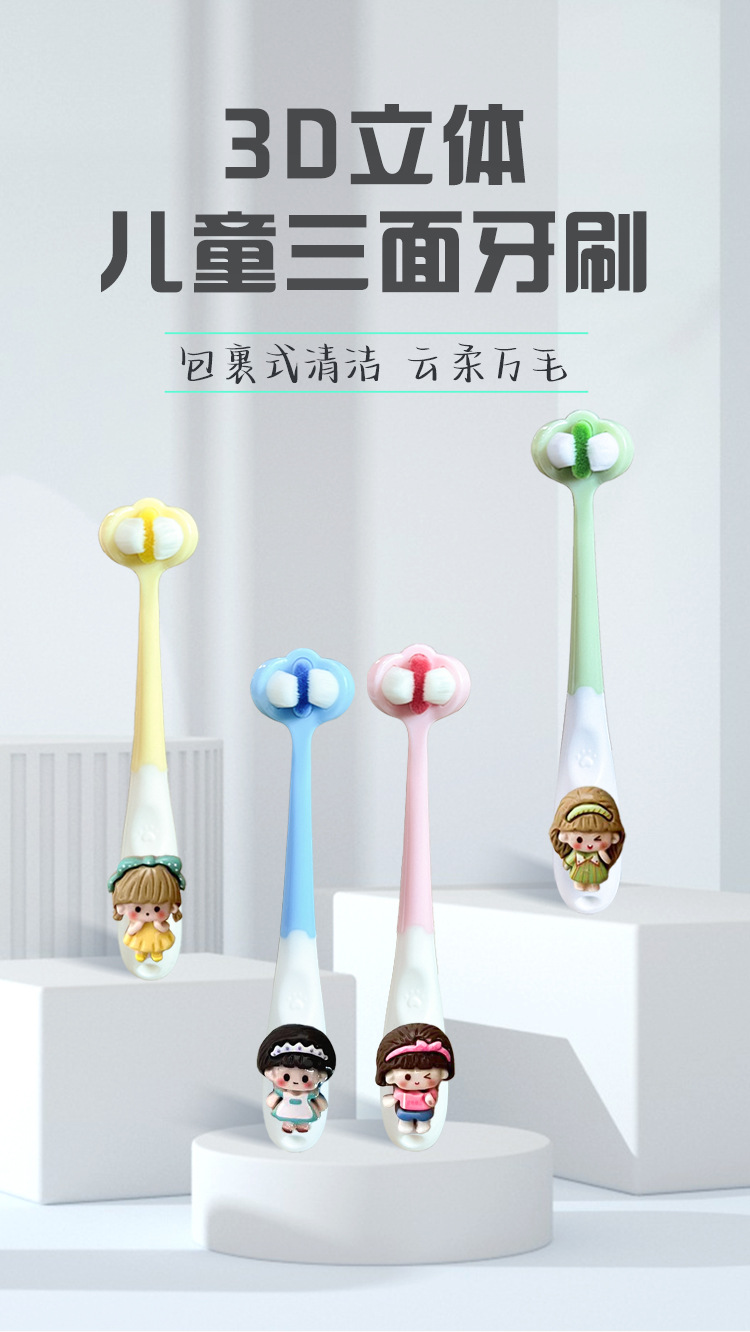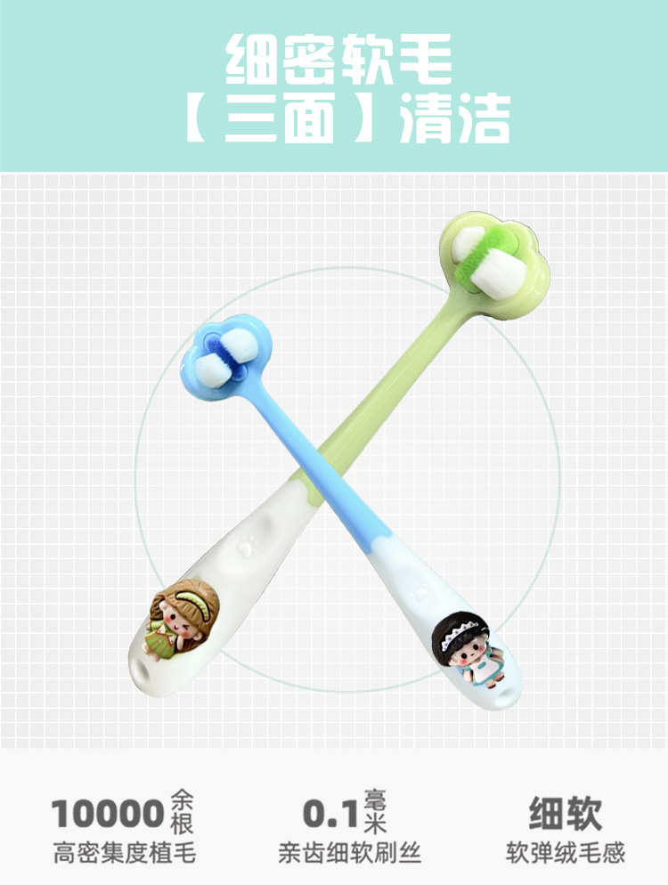 어린이용 삼면 칫솔, 부드러운 모의 유치용 칫솔, 3-12세 유아 전용 칫솔, 삼중모 유치 전용 칫솔