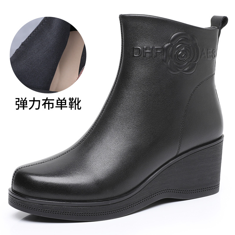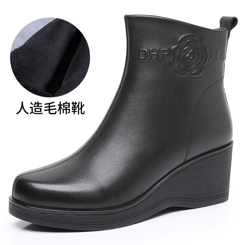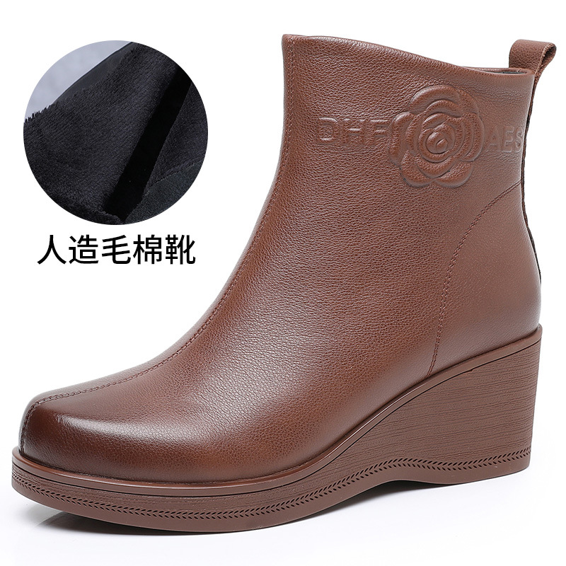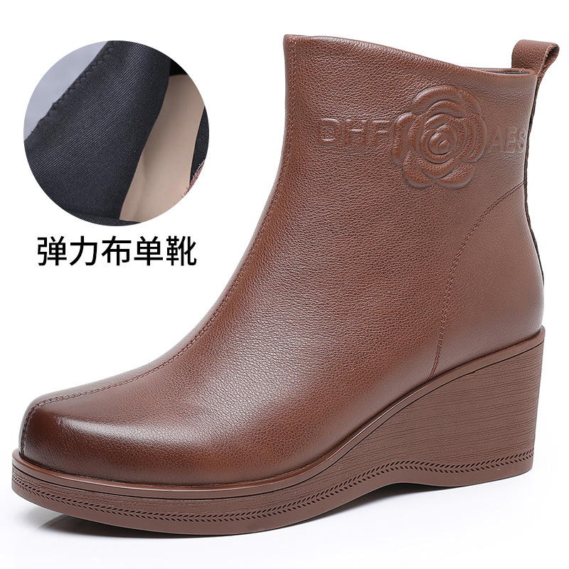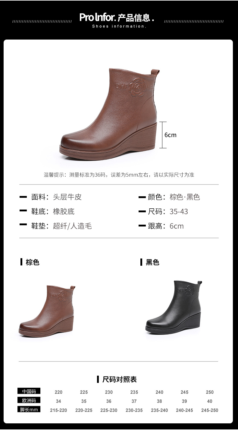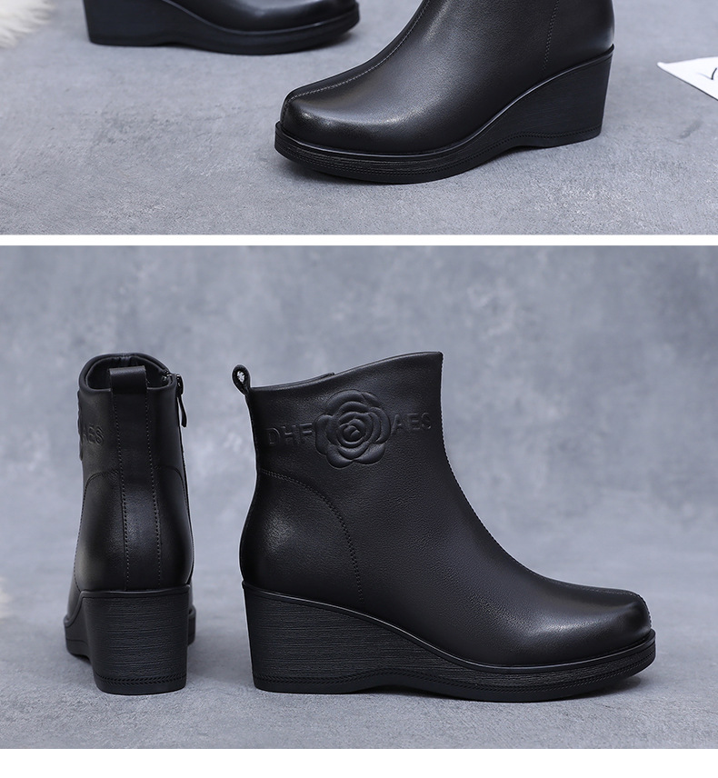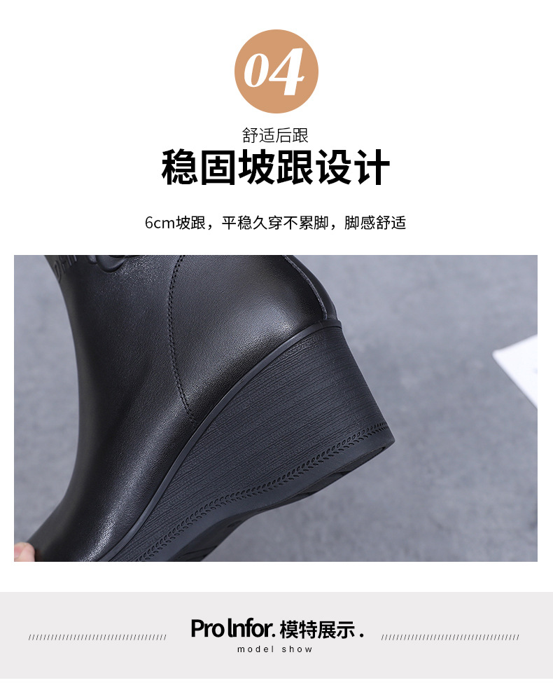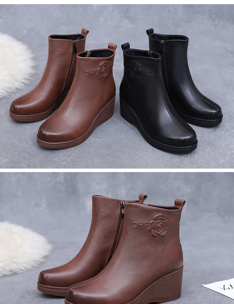 빈티지 디자인 센스 라운드 발가락 웨지 가죽 발목 부츠 여성의 2024 가을 및 겨울 새로운 탑 레이어 Cowhide 사이드 지퍼 대형 부츠스토어 가기