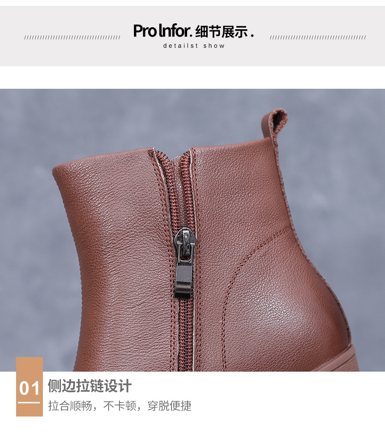 빈티지 디자인 센스 라운드 발가락 웨지 가죽 발목 부츠 여성의 2024 가을 및 겨울 새로운 탑 레이어 Cowhide 사이드 지퍼 대형 부츠