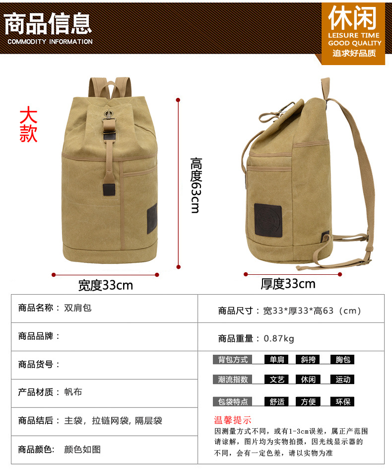 대용량 캔버스 남성 배낭 자동차 스티칭 강화 견고한 휴대용 야외 배낭 멀티 컬러 재고 여행스토어 가기