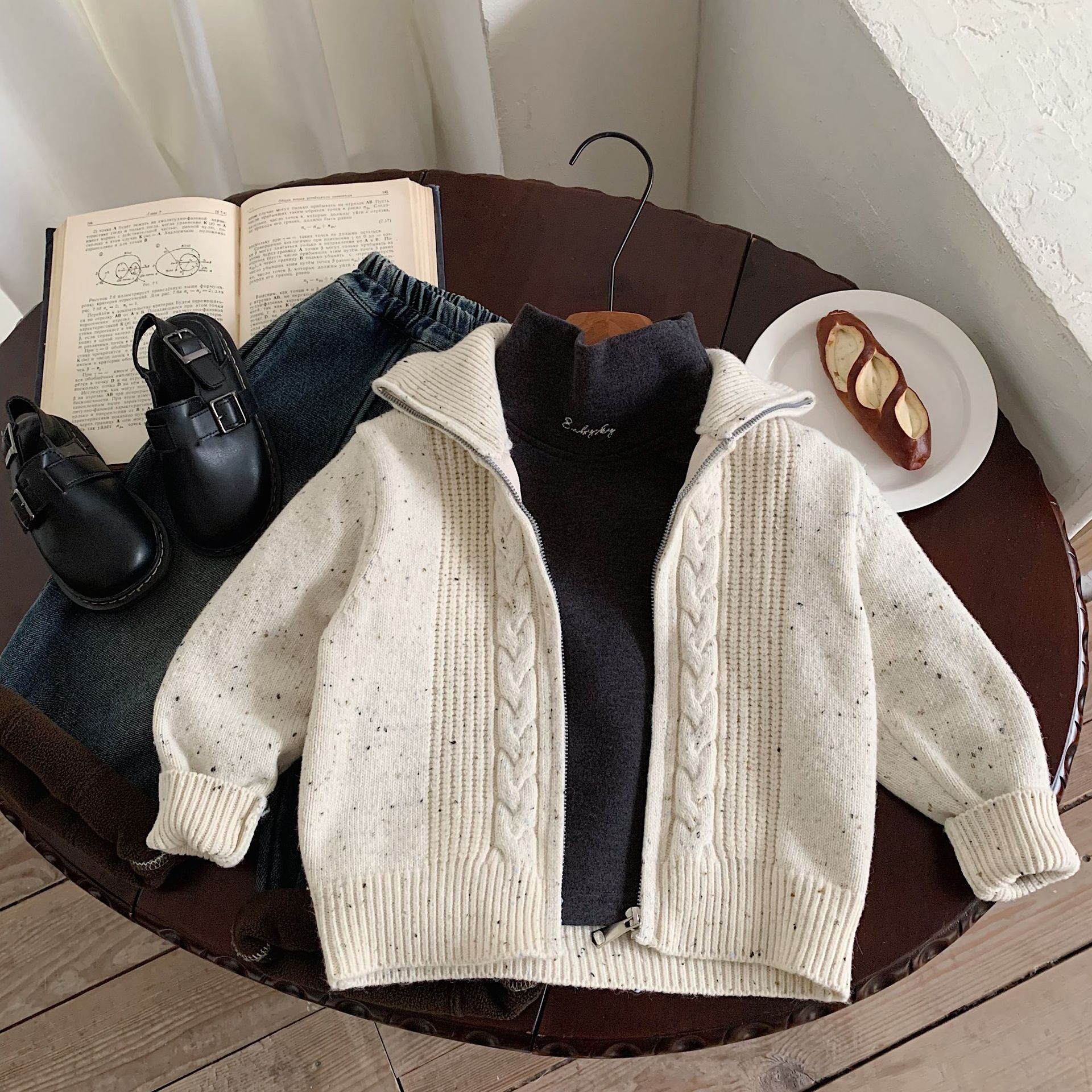 아동용 스웨터 Bangcheng 2025 겨울 신제품 컬러 도트 라펠 재킷 소년 소녀 다용도 탑 MY0060스토어 가기