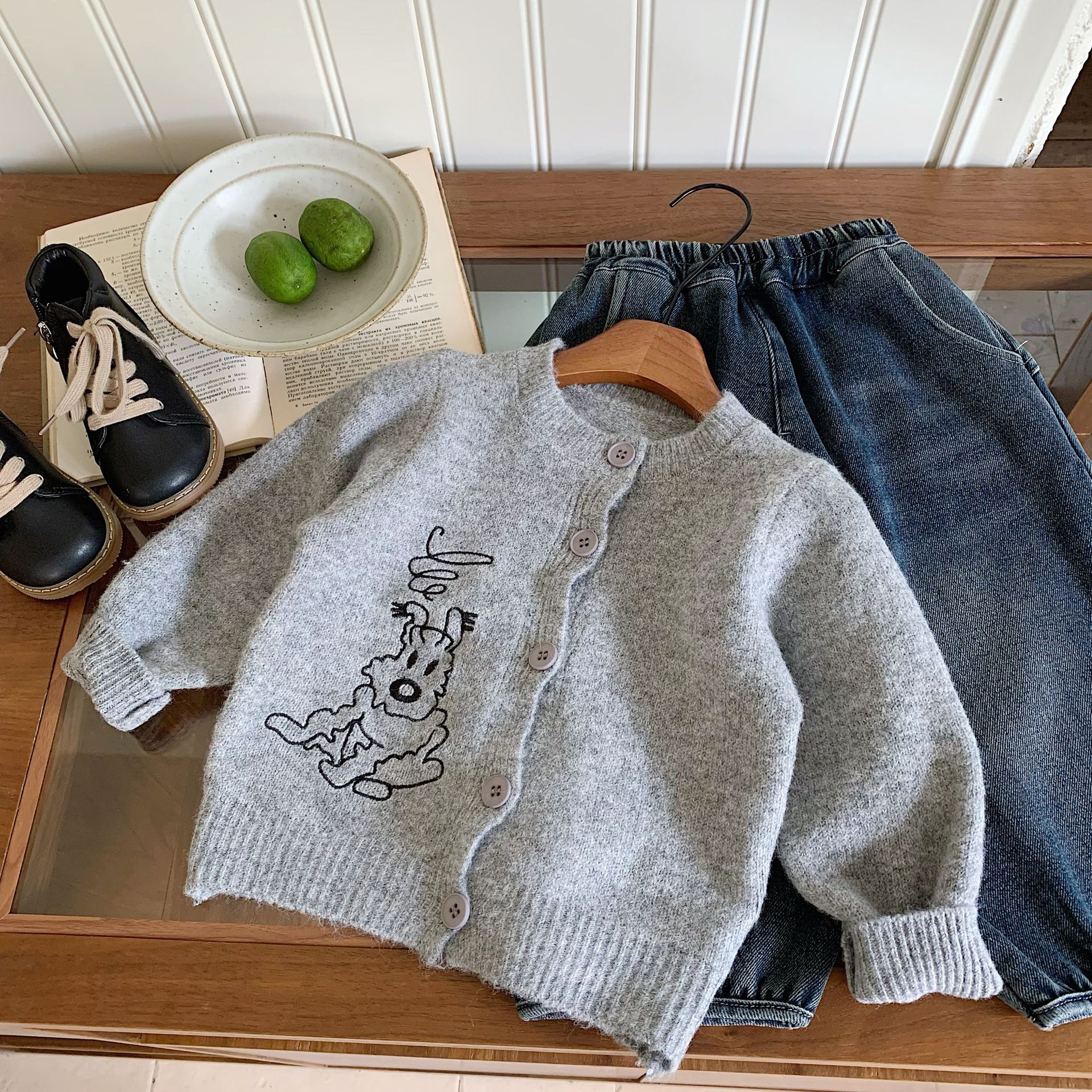 어린이 스웨터 Bangcheng 2025 겨울 자수 강아지 니트 버튼업 셔츠 남아 의류 다용도 상의 MY0070