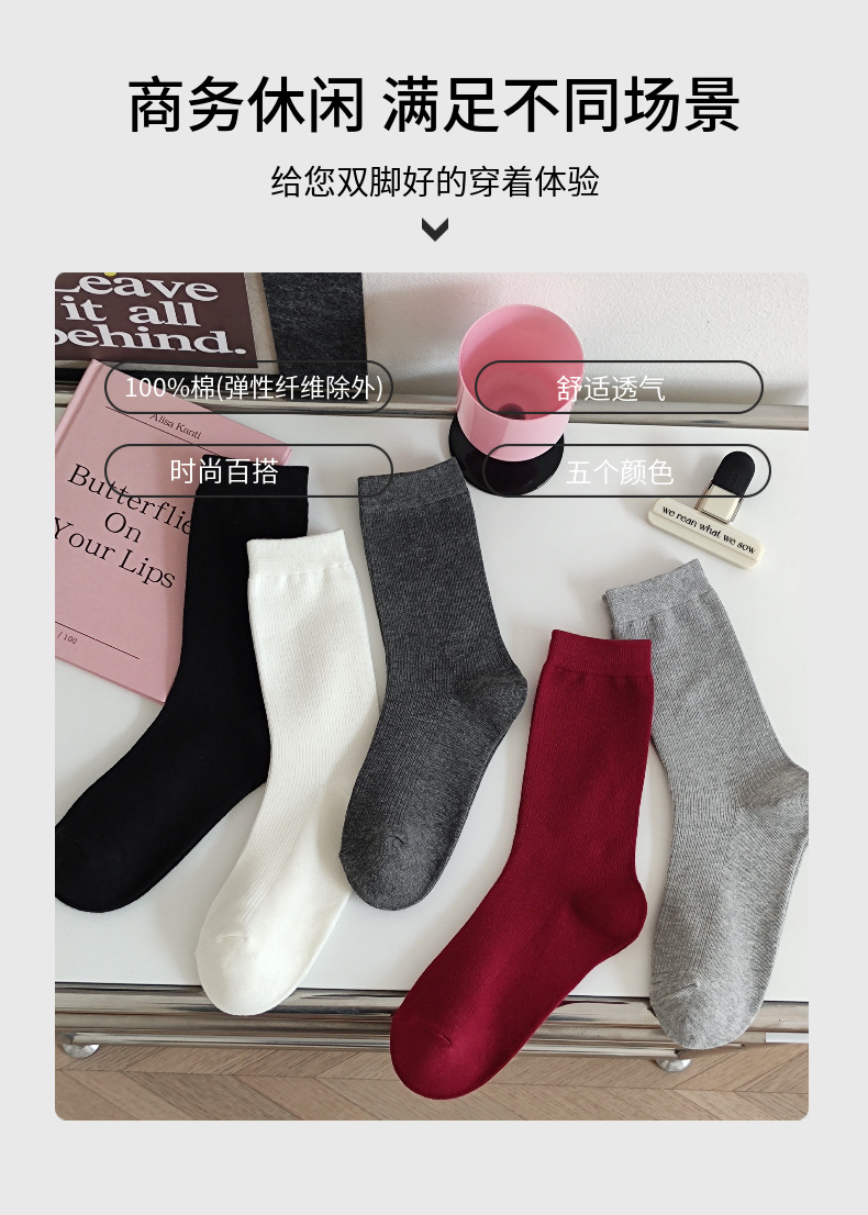 가을 겨울 신상 순면 다용도 단색 양말 중목 양말 도매 통기성 땀 흡수 양말 여성용 순면 롱 양말스토어 가기