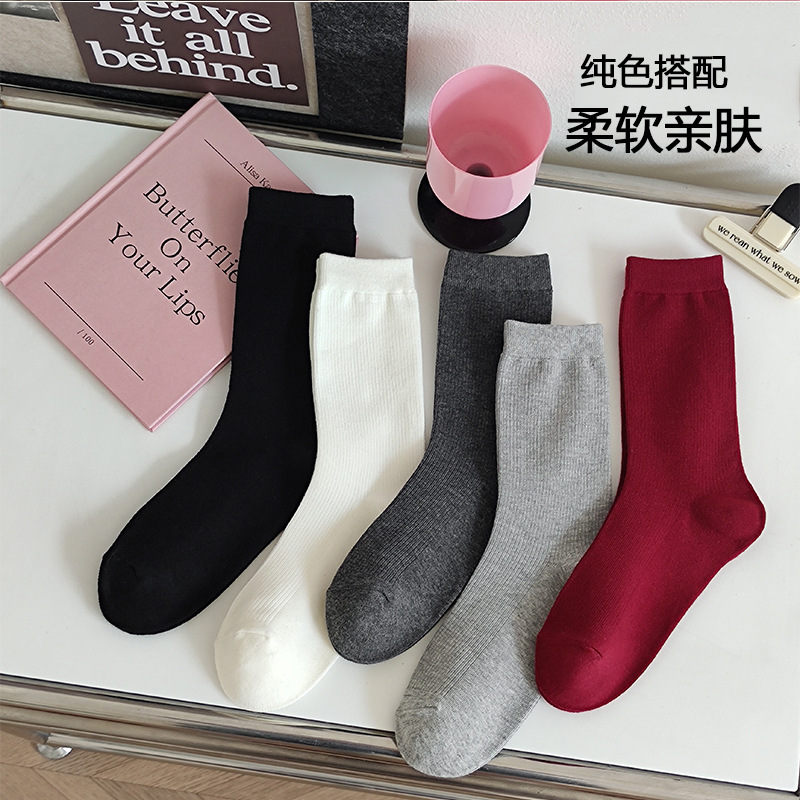 가을 겨울 신상 순면 다용도 단색 양말 중목 양말 도매 통기성 땀 흡수 양말 여성용 순면 롱 양말