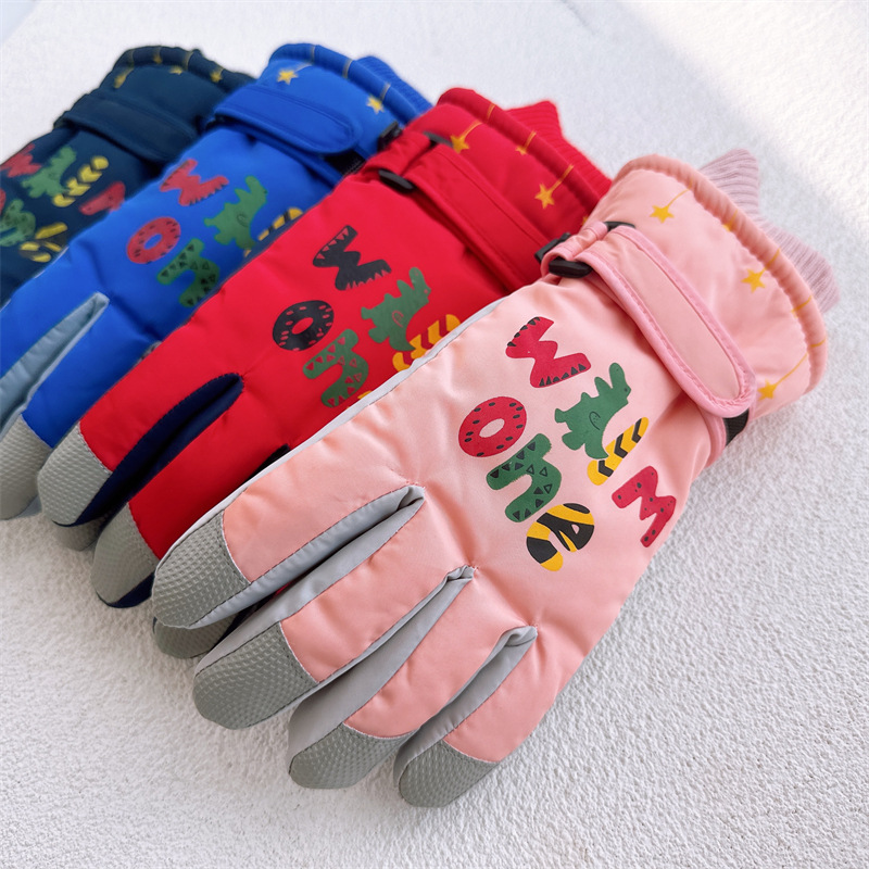겨울 어린이 스키 장갑 플러스 벨벳 미끄럼 방지 아기 장갑 야외 만화 방수 눈 장갑 어린이
