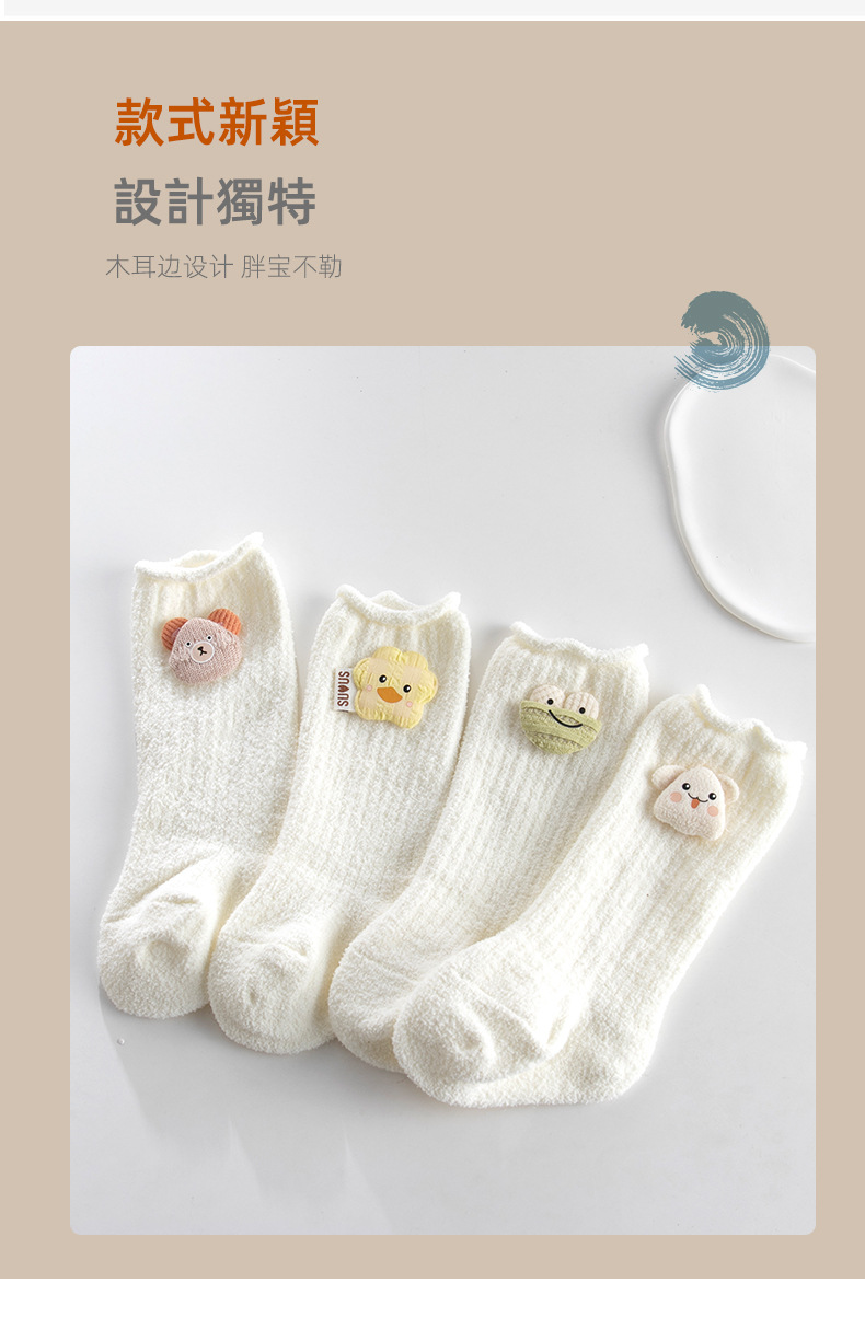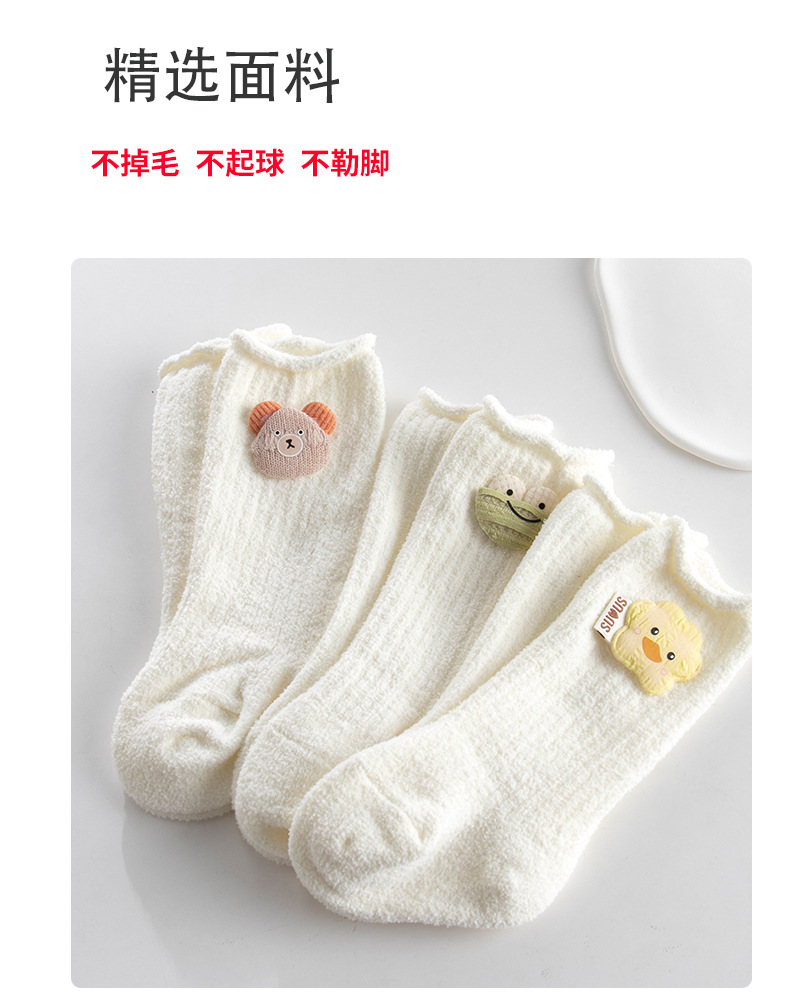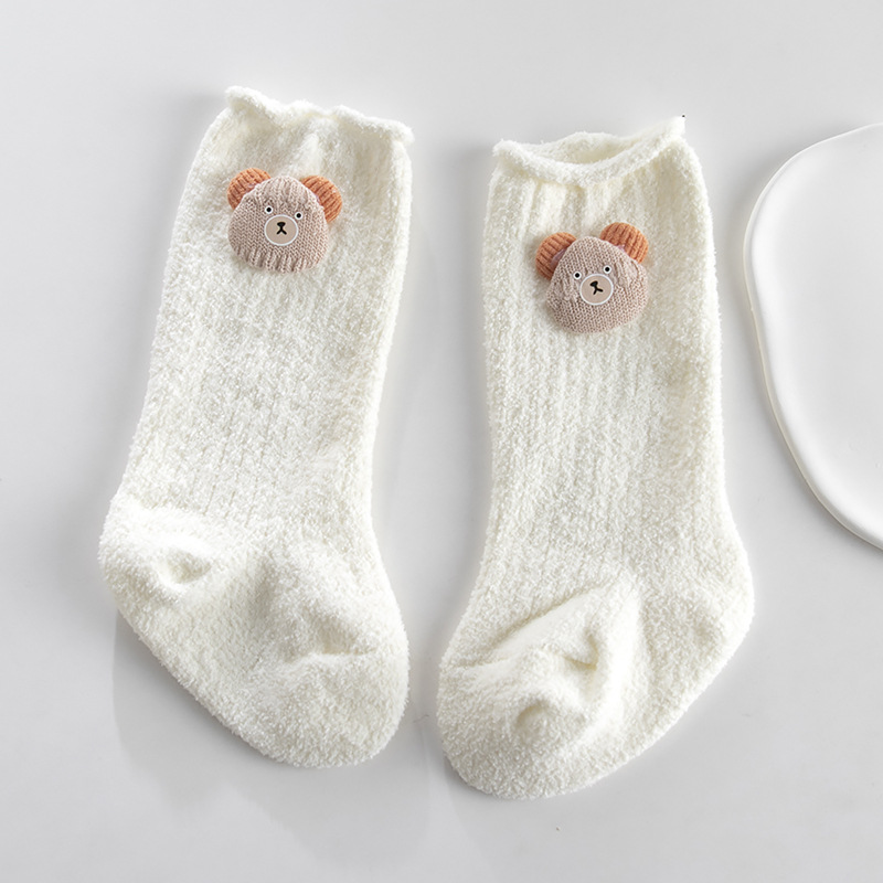 宝宝袜跨境立体小熊棉袜儿童防滑地板袜DIY中筒袜春秋松口袜复古